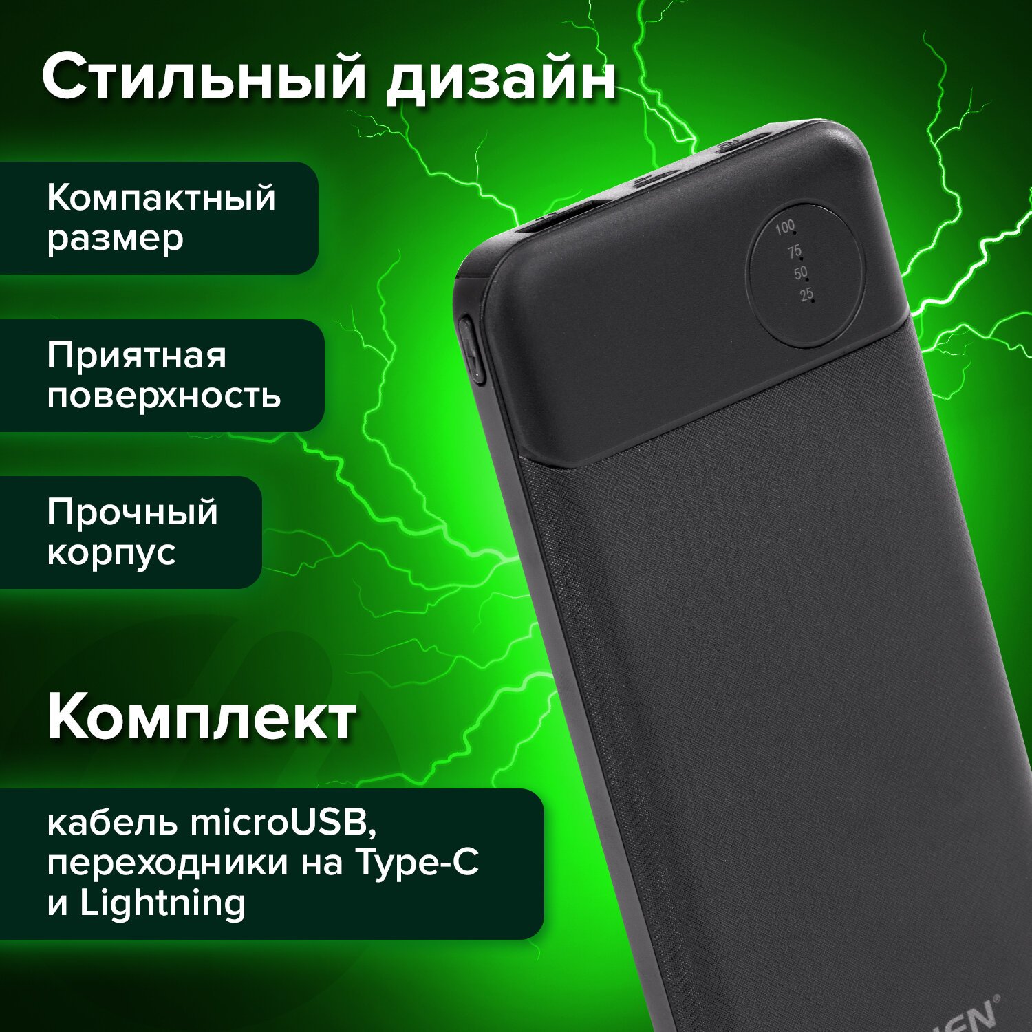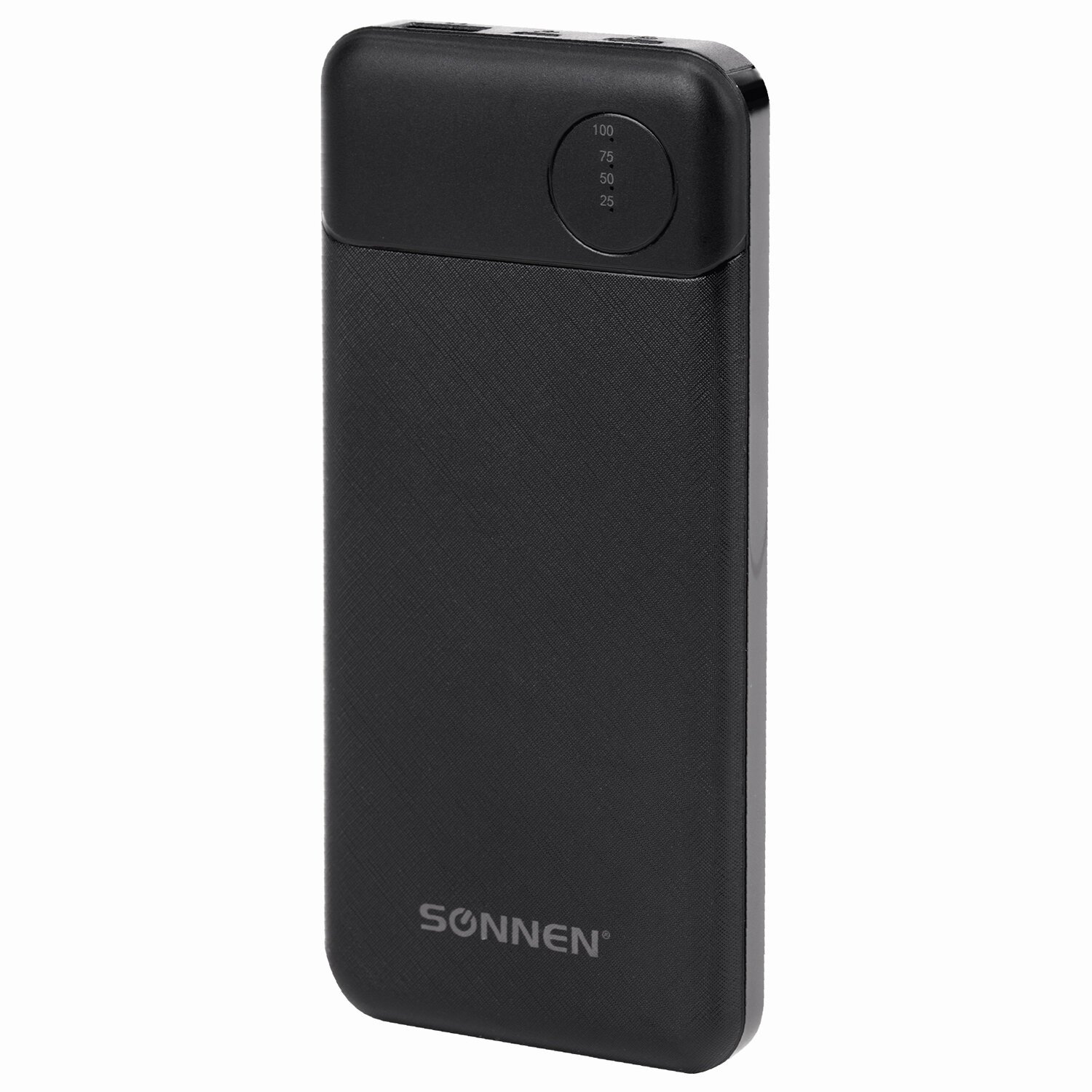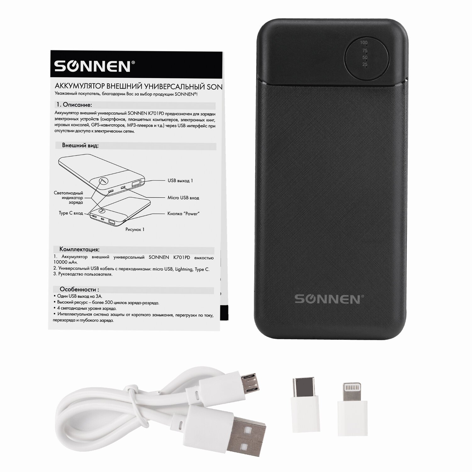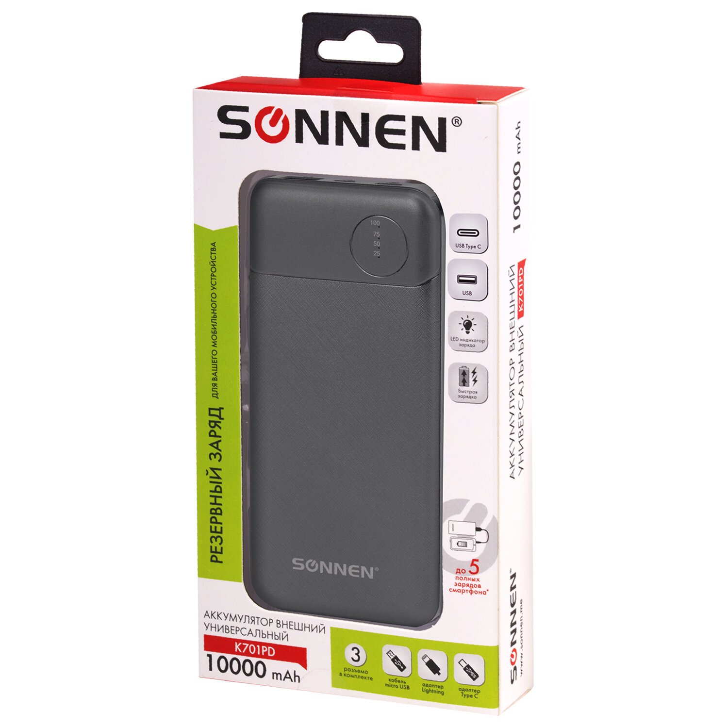 Аккумулятор внешний 10000 mAh SONNEN POWERBANK K701PD БЫСТРАЯ ЗАРЯДКА, 2USB, литий-полимерный, 263031