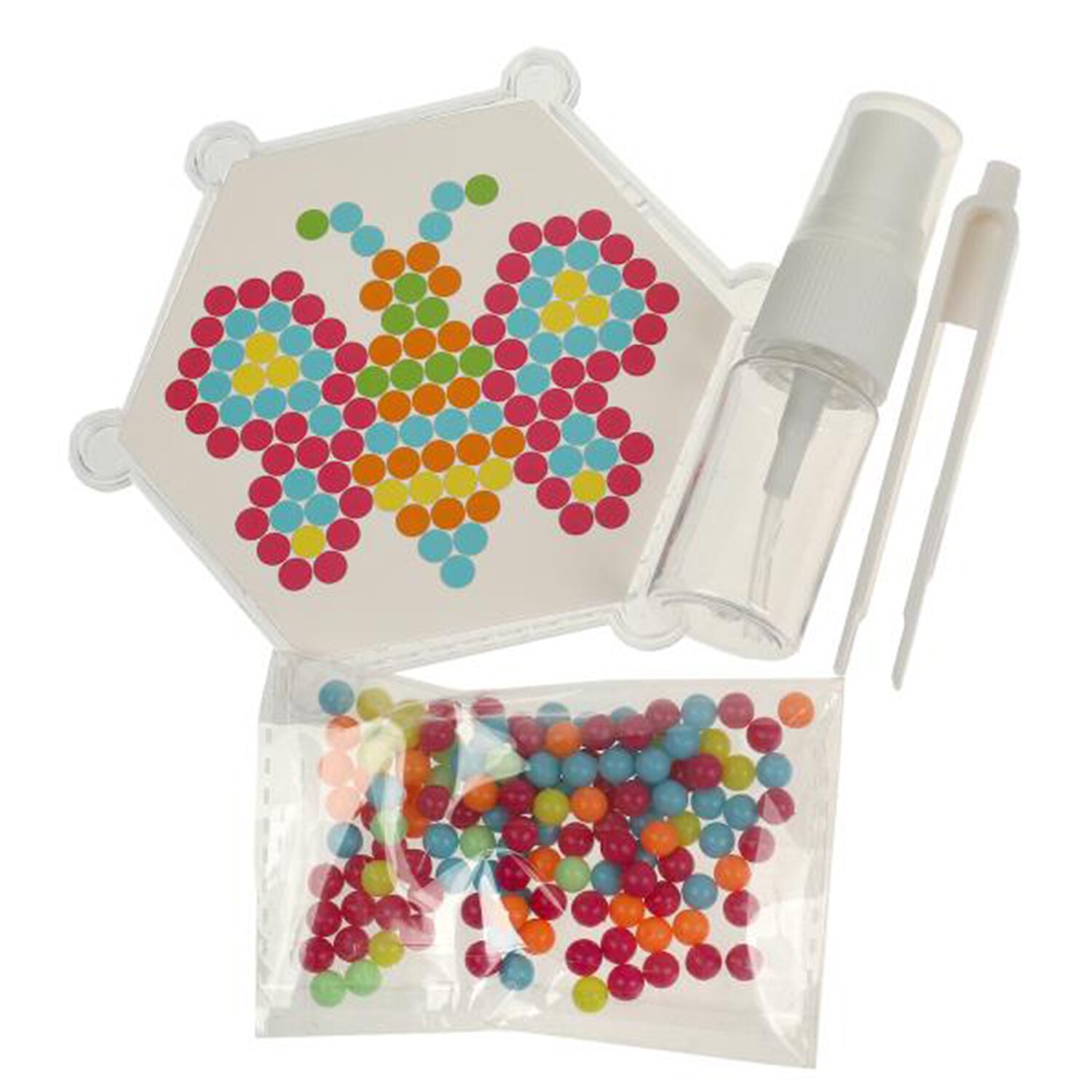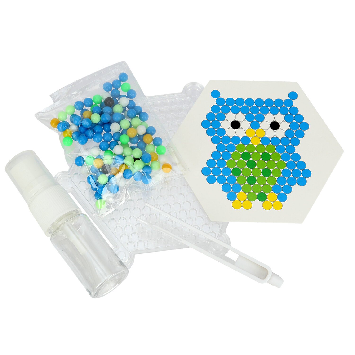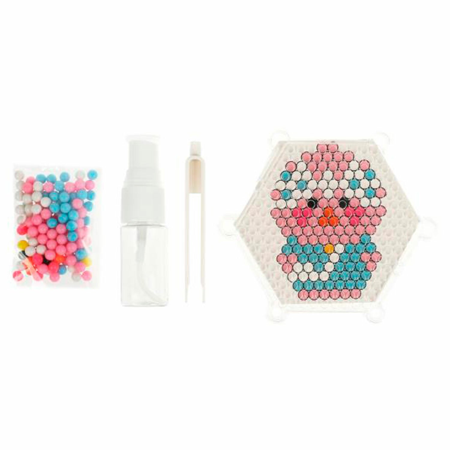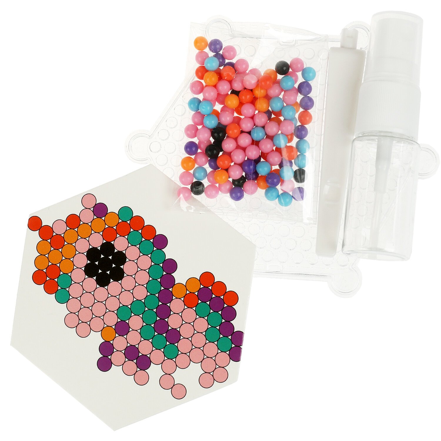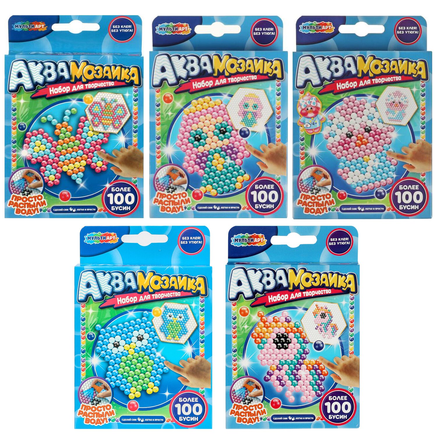 Аквамозаика – это набор специальных бусин для создания картинок по трафаретам, входящим в набор. Бусины склеиваются между собой, если побрызгать на них обычной водой.