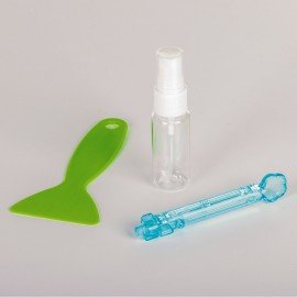 В набор входят бусины 15 различных цветов, около 100 штук каждого цвета, пластиковый контейнер с отсеками для удобного хранения бусин, 2 подставки-трафарета, 8 двусторонних карточек с картинками, бутылочка-пульверизатор для воды, специальная ручка для аквамозаики и лопатка для снятия готовой фигурки с трафарета.