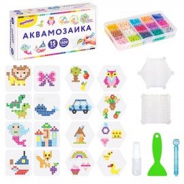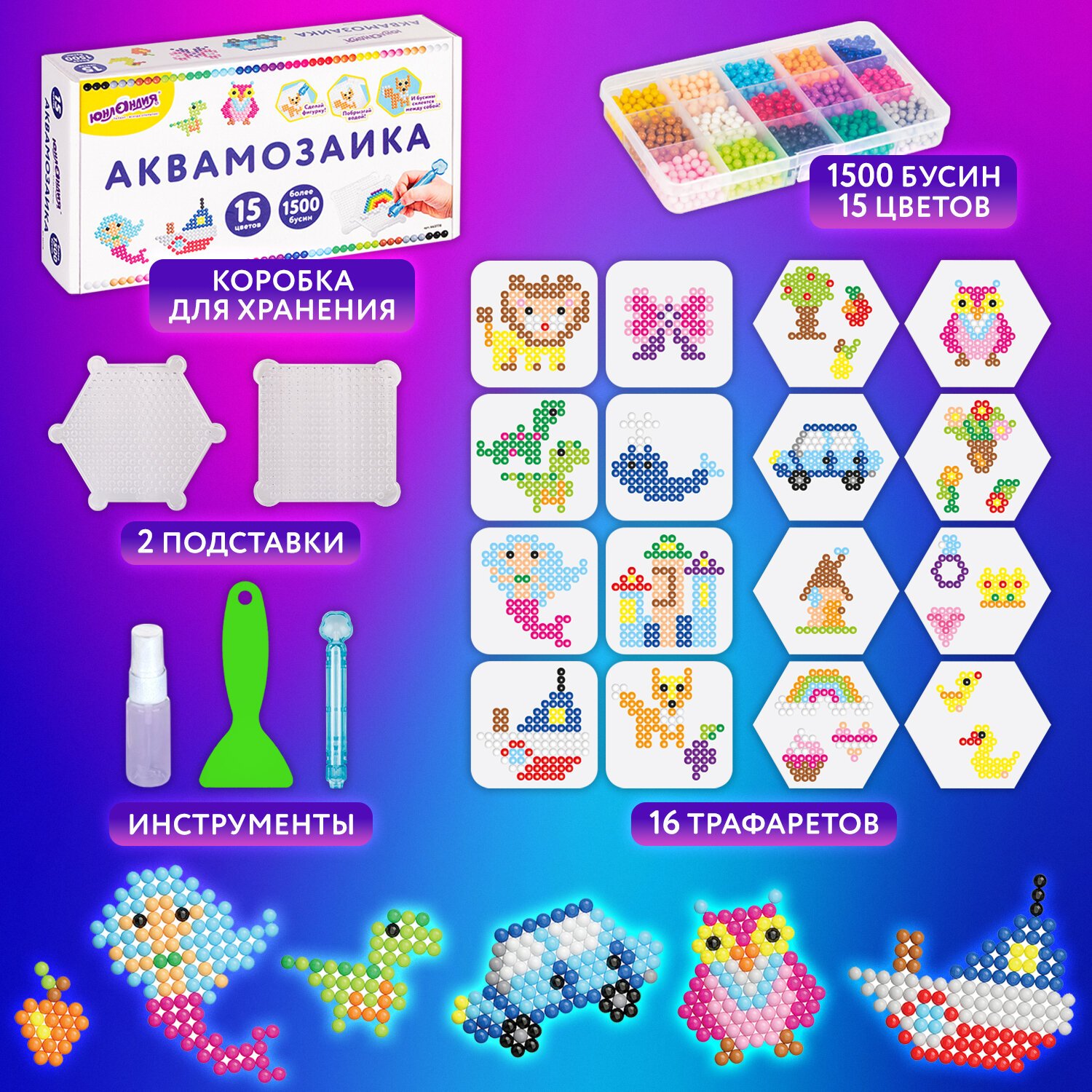 Аквамозаика, 15 цветов, 1500 бусин, в колорбоксе, ЮНЛАНДИЯ, 663778