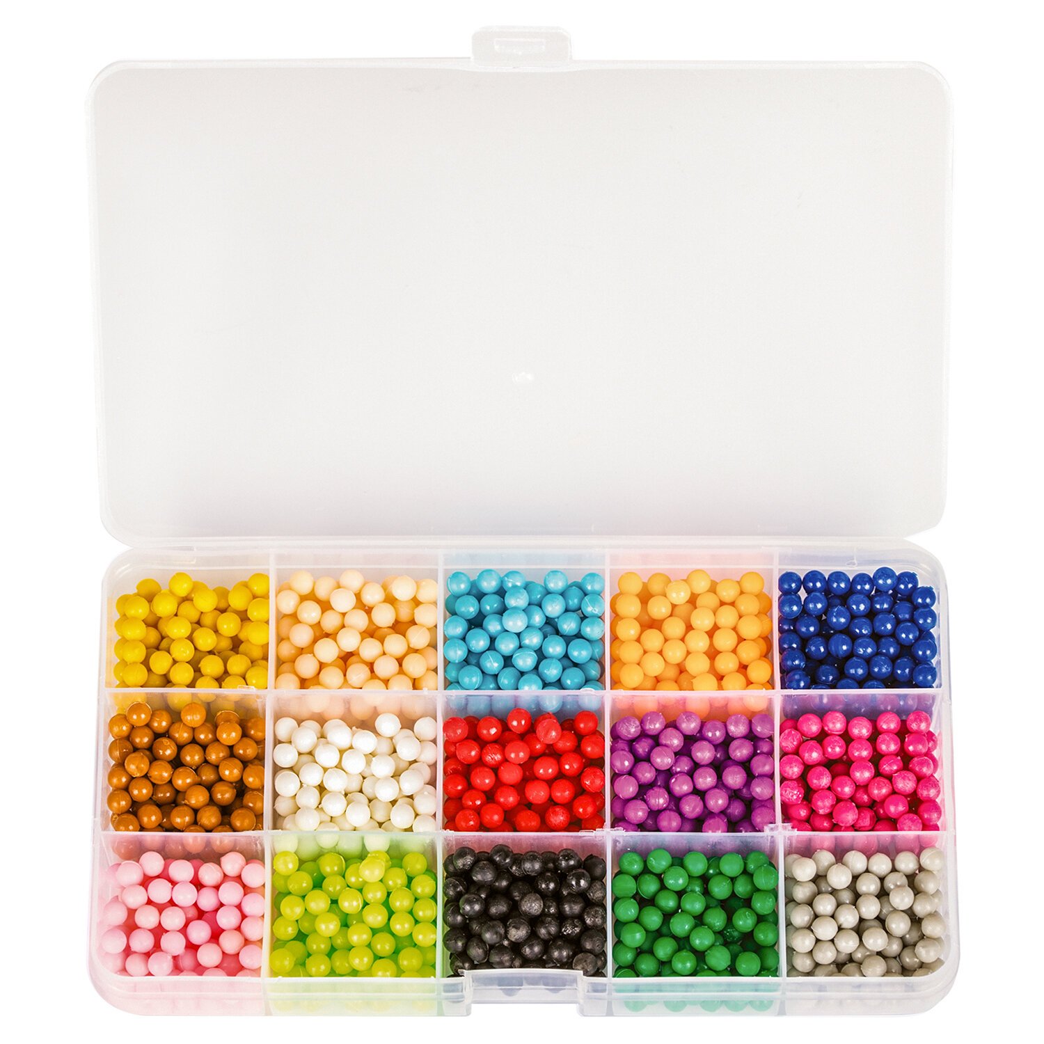 Как играть: 1. Выберите понравившийся рисунок и поместите его под прозрачную подставку-трафарет. 2. Набирайте бусины нужных цветов в специальную ручку и выкладывайте их на трафарет, нажав на кнопку внизу ручки. Обратная сторона ручки оснащена специальной ложечкой, которая позволяет набирать по несколько бусин сразу! 3. Продолжайте выкладывать бусины различных цветов по трафарету, пока не закончите рисунок. 4. Наберите в бутылочку обычной воды и побрызгайте на фигурку водой. 5. Подождите 20-60 минут (в зависимости от количества воды, сложности фигурки). 6. Снимите готовую игрушку с подставки! Получившаяся игрушка достаточно крепкая, в неё можно играть или подарить друзьям.