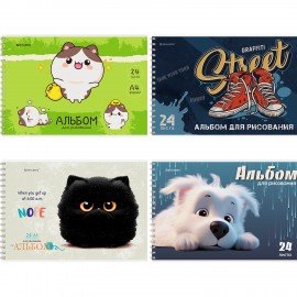 Альбом д/рис. А4 24л., скоба, обложка картон, HATBER, 205х290мм, Ассорти-Выпуск №4, 24А4В