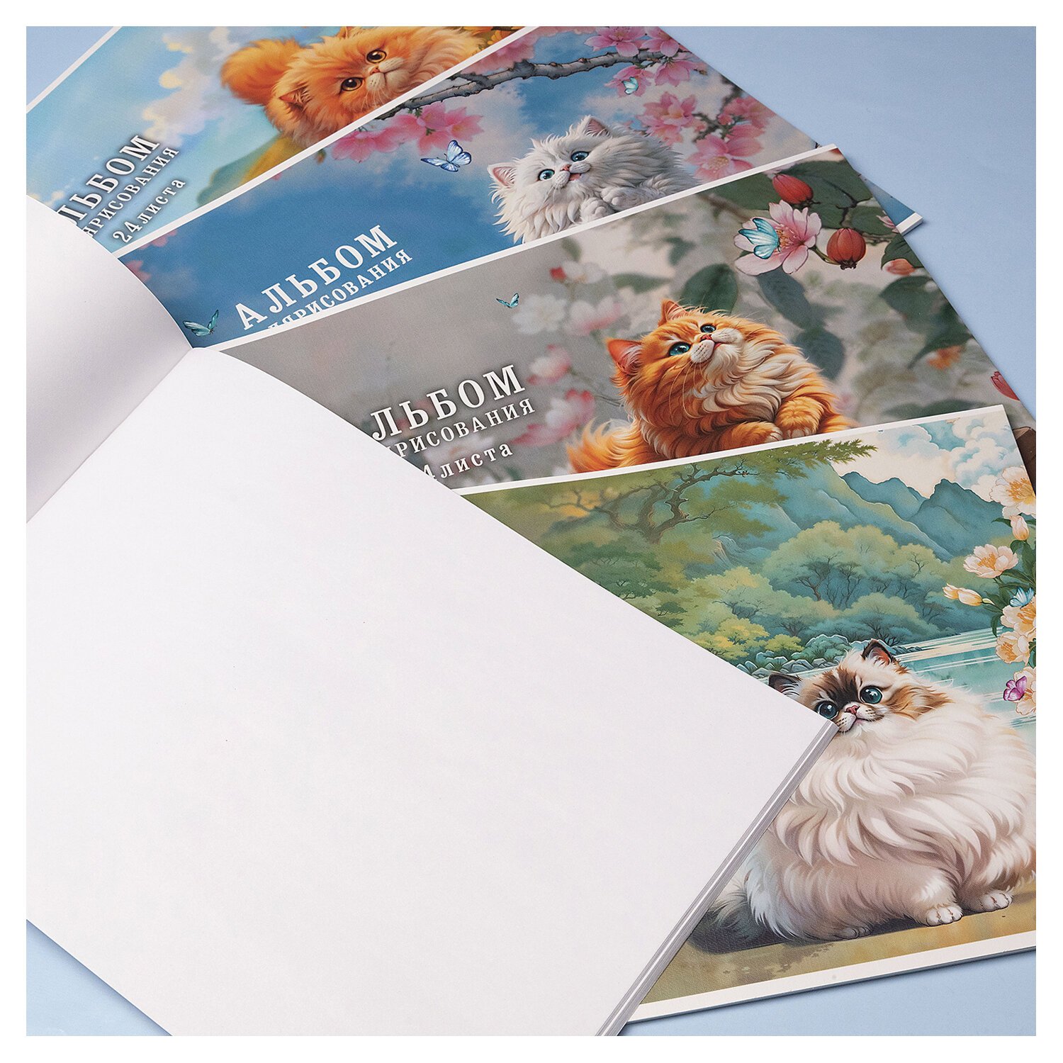 Альбом д/рис. А4 24л., спираль, обложка картон, HATBER, 198х300мм, Кот Борис (5 видов), 24А4Всп