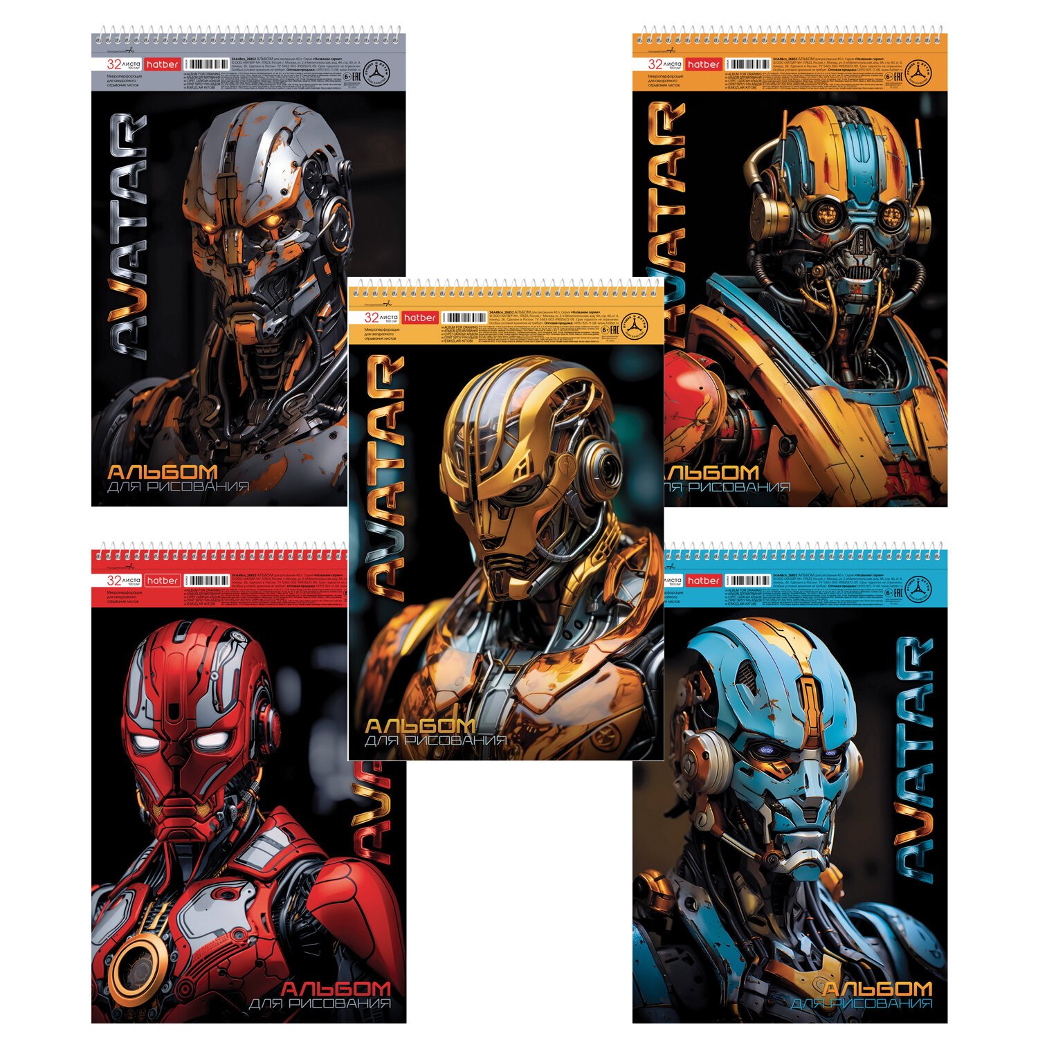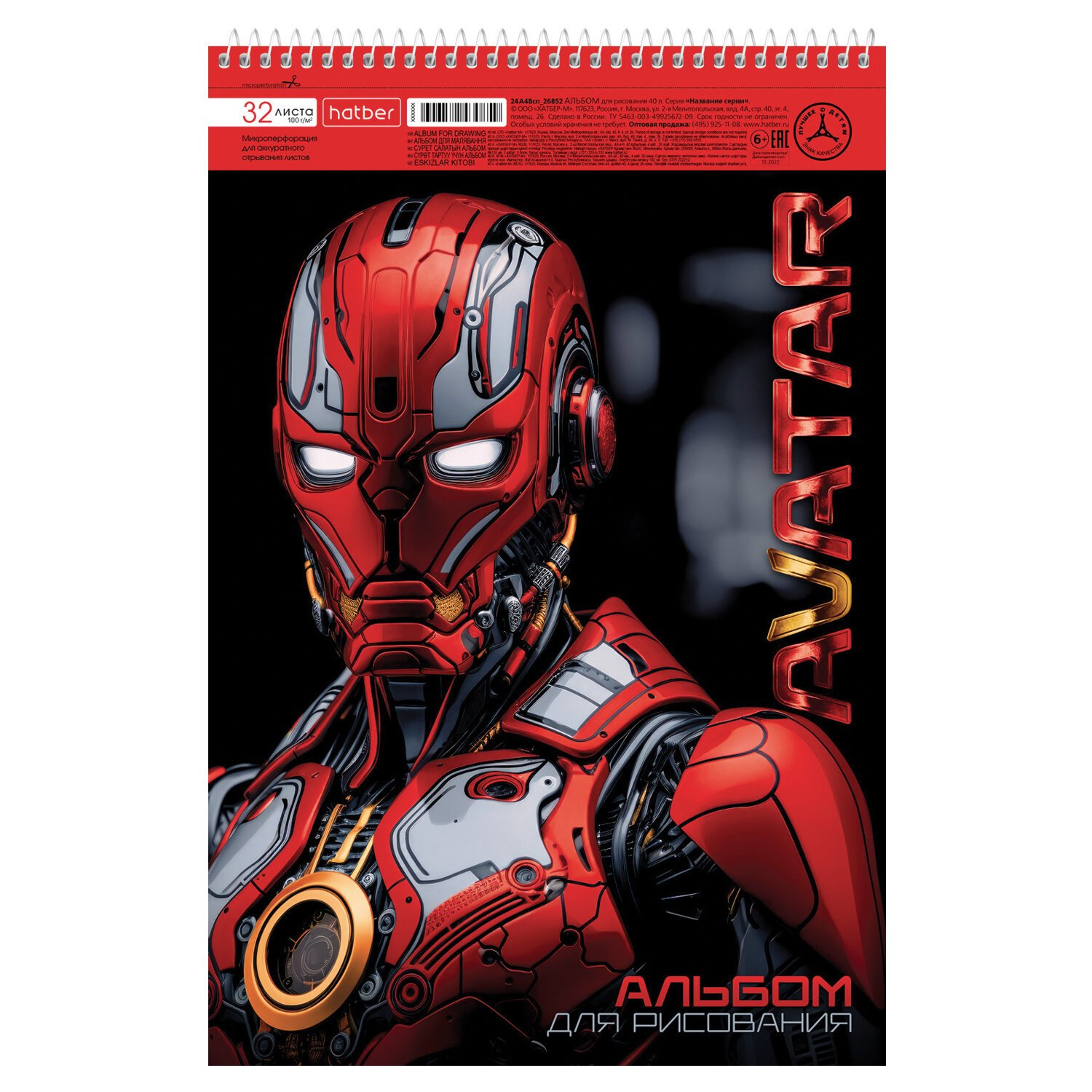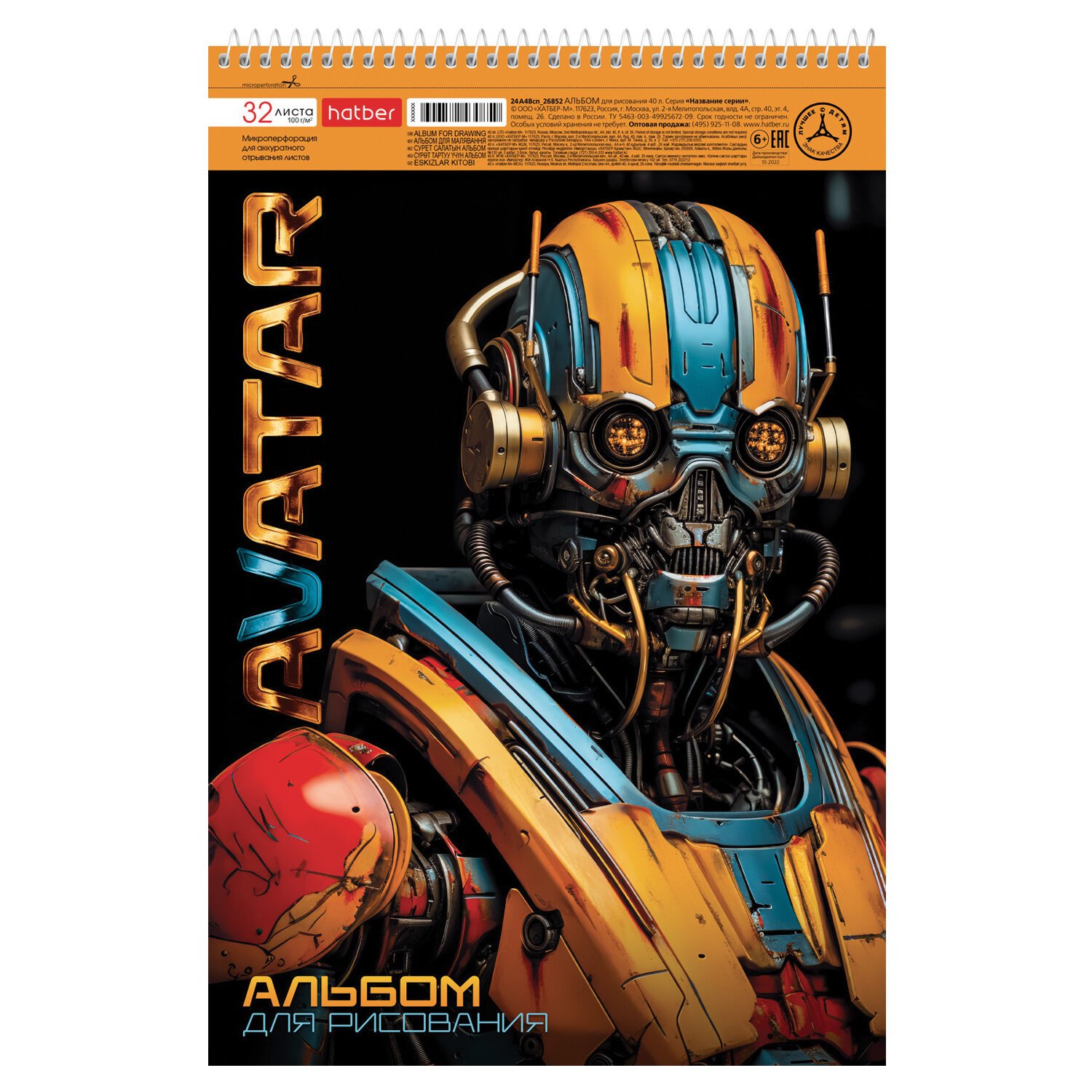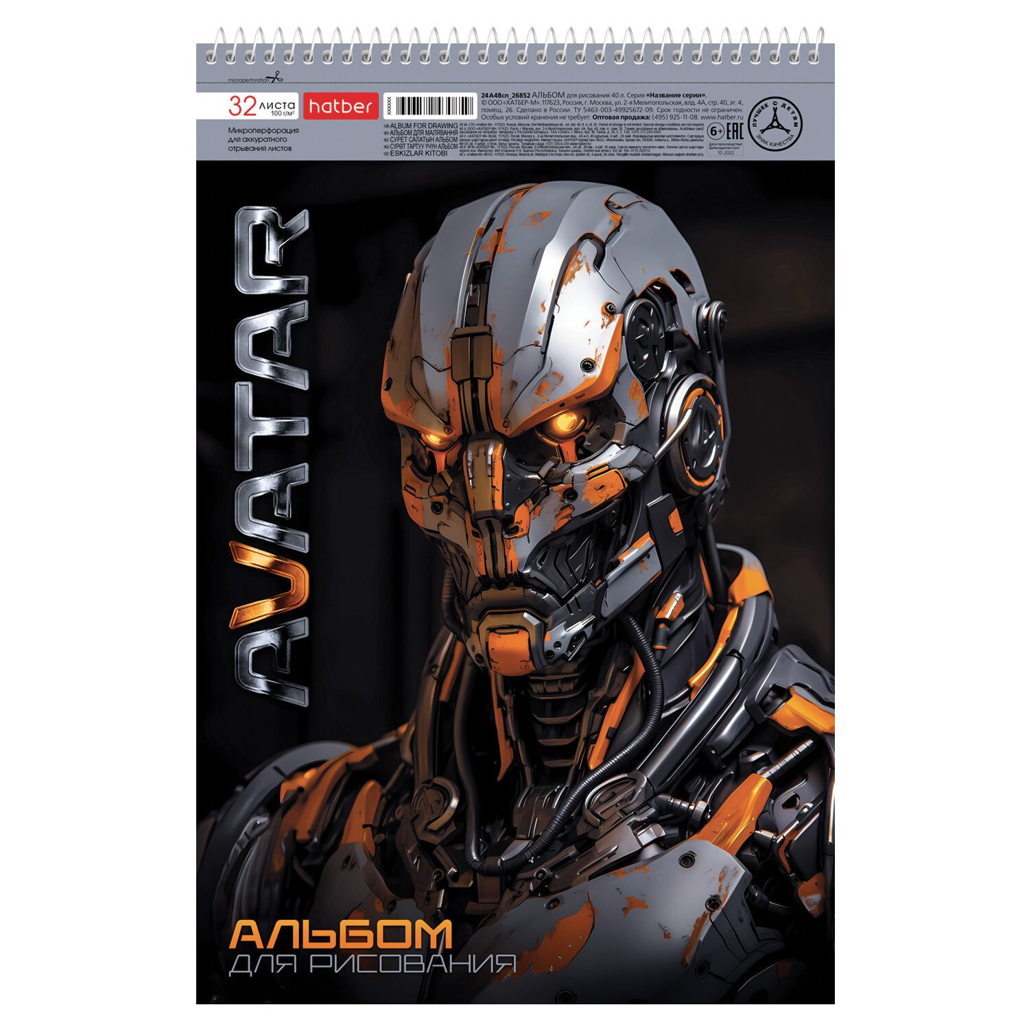 Альбом А4 формата, на спирали. Внутренний блок - 32 листа, офсетная бумага 100 гр. Микроперфорация позволит легко и аккуратно отрывать листы от альбома. Обложка изготовлена из высококачественного мелованного картона.