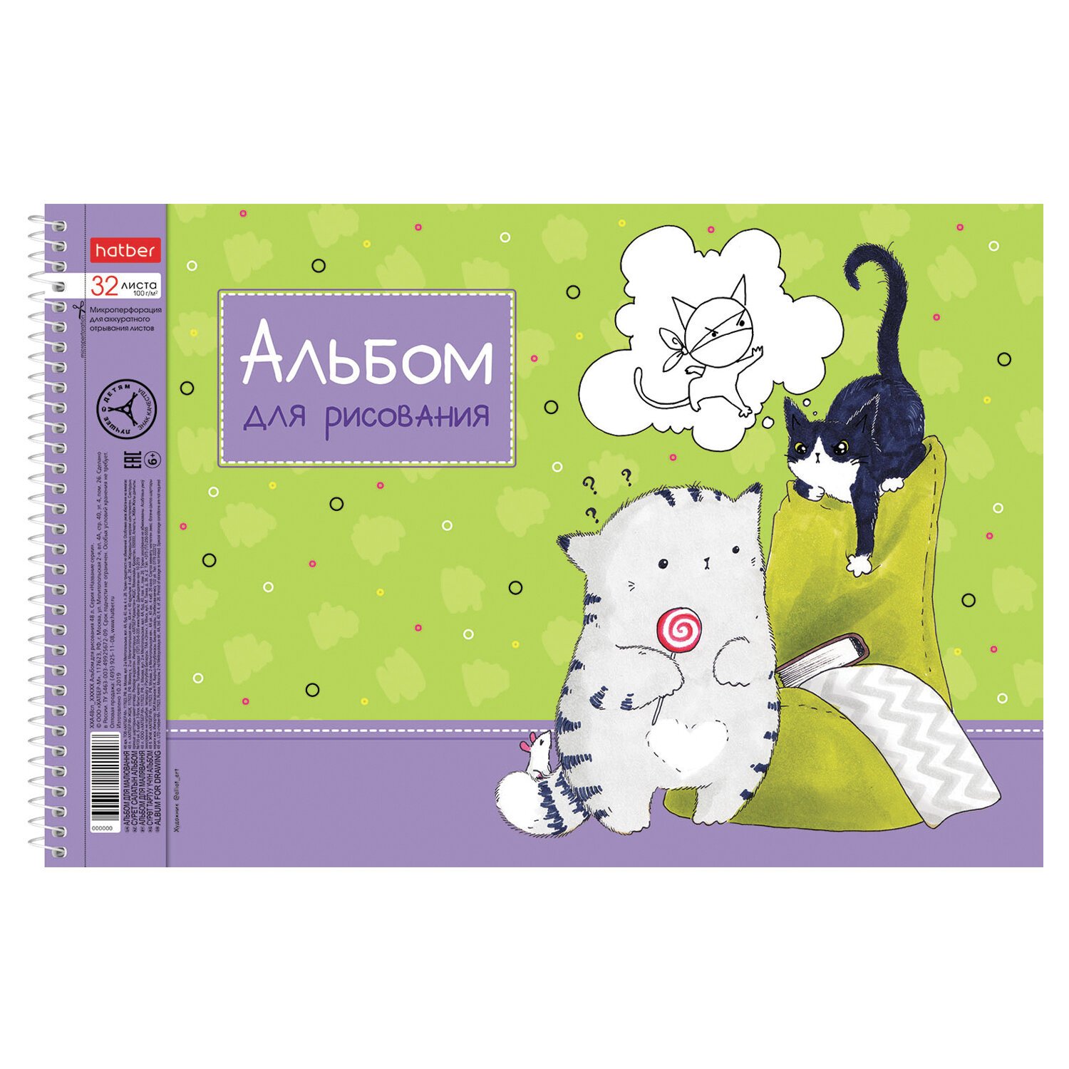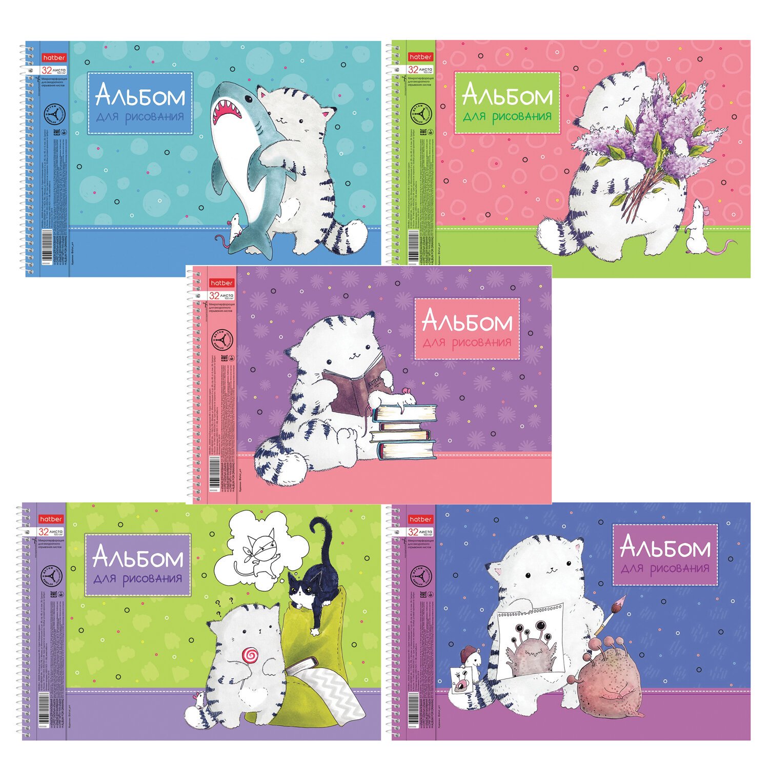 Альбом для рисования, А4, 32 листа, спираль, обложка картон, HATBER, 205х300 мм, "Ассорти", 32А4Всп, A274705