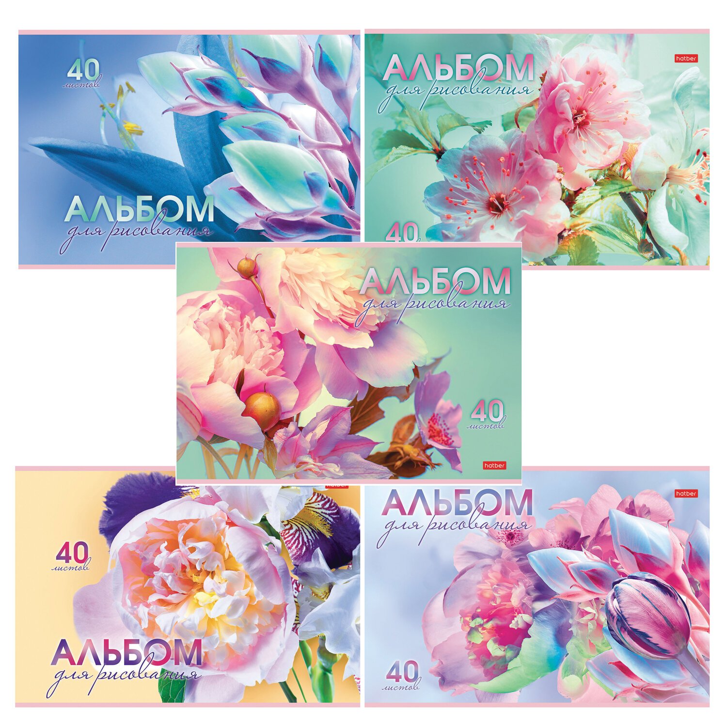 Альбом д/рис. А4 40л., скоба, обложка картон, HATBER, 205х290мм, Грация цветов, 40А4В