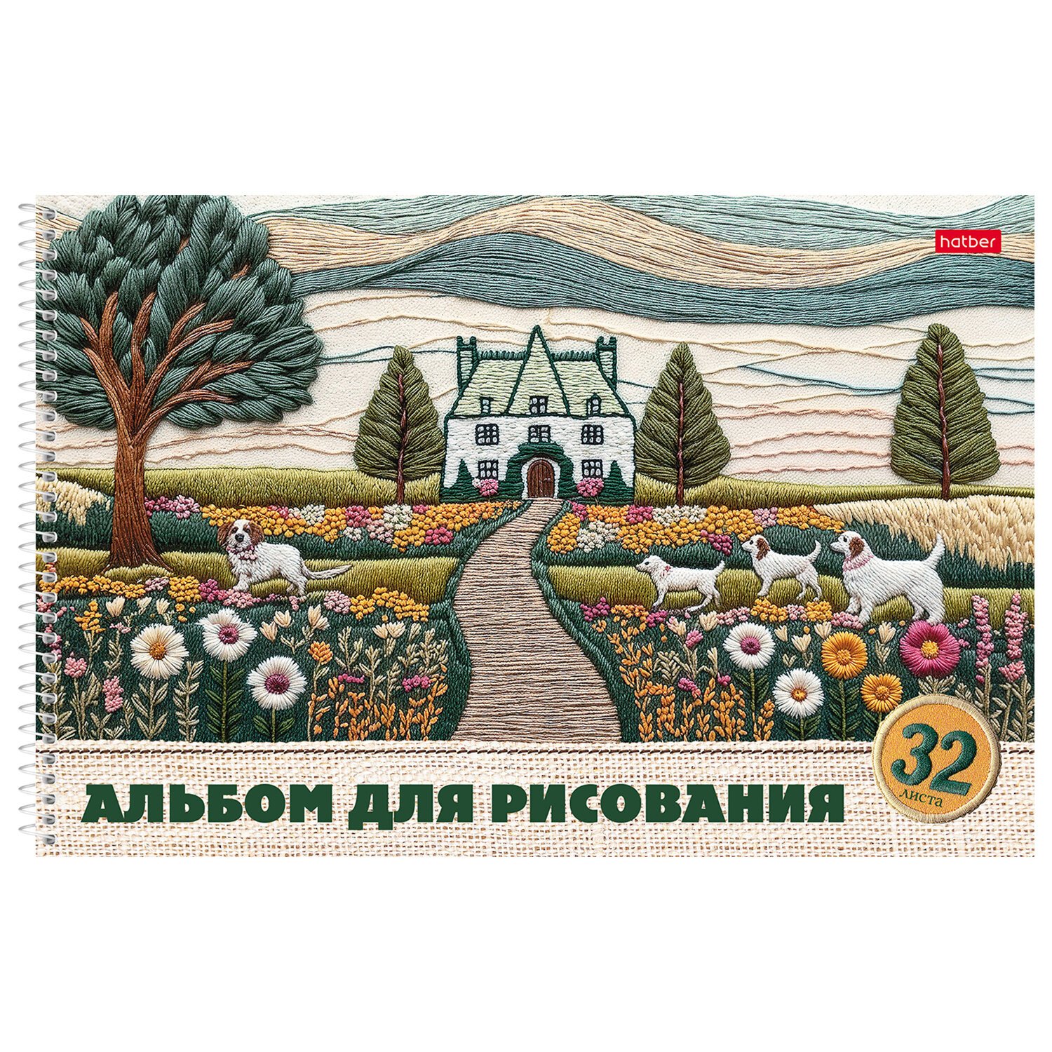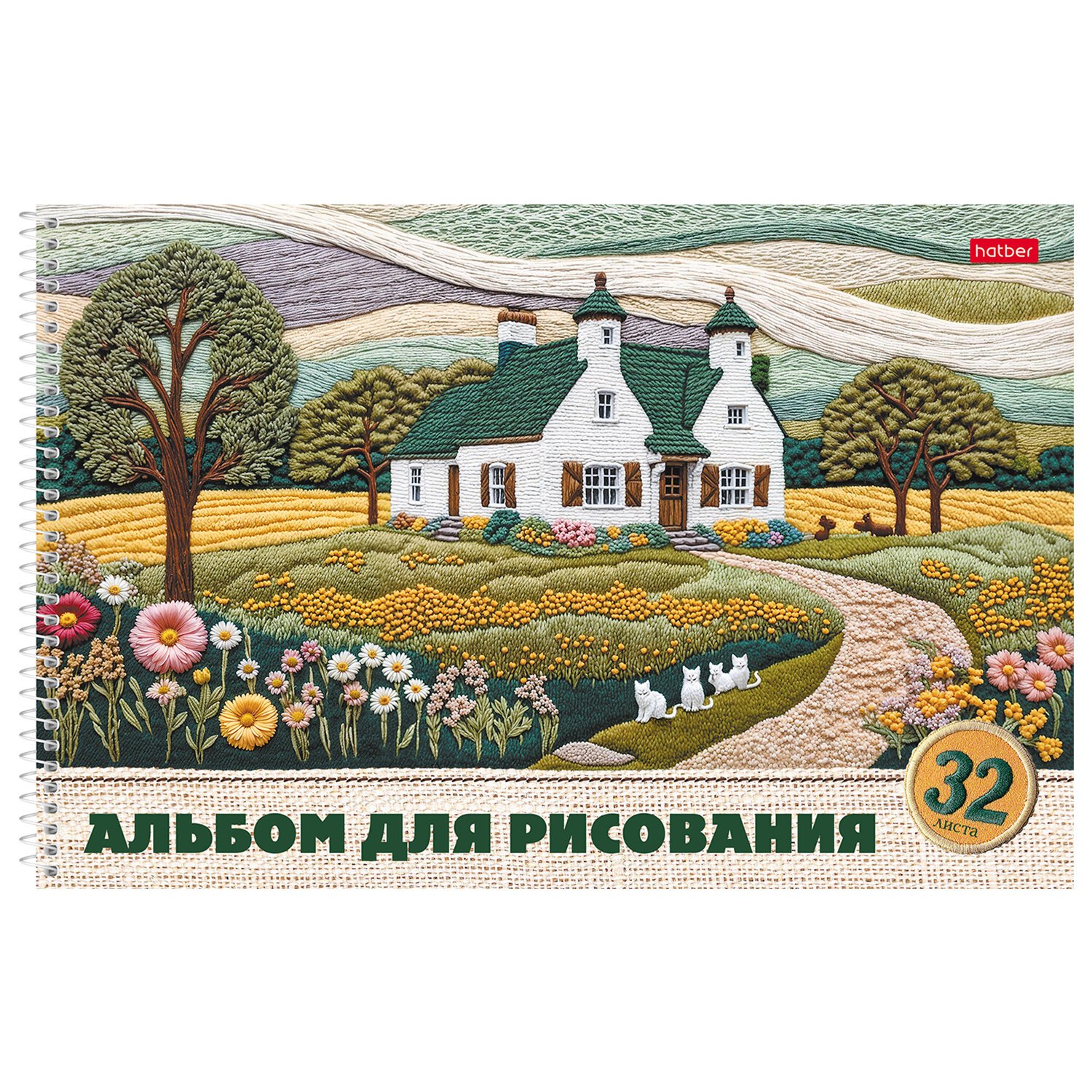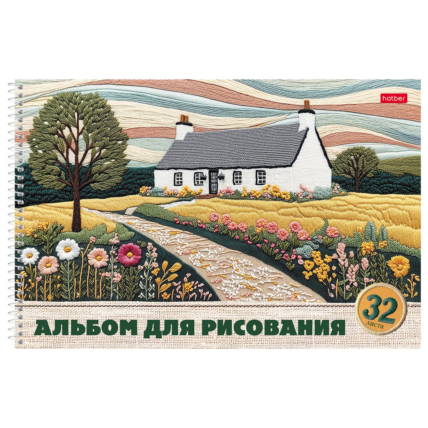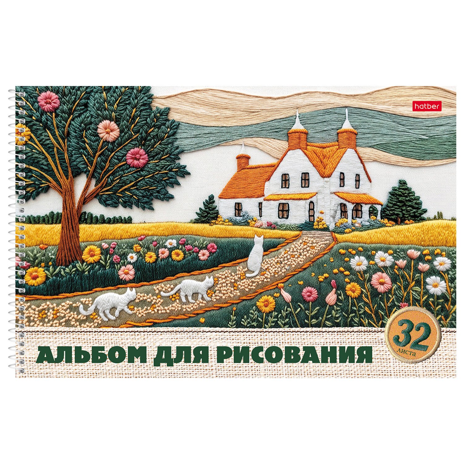 Альбом д/рис. обложка пластик, А4 32л., спираль, HATBER, 196х302мм, Тепло стежков (5, 32А4Вгр