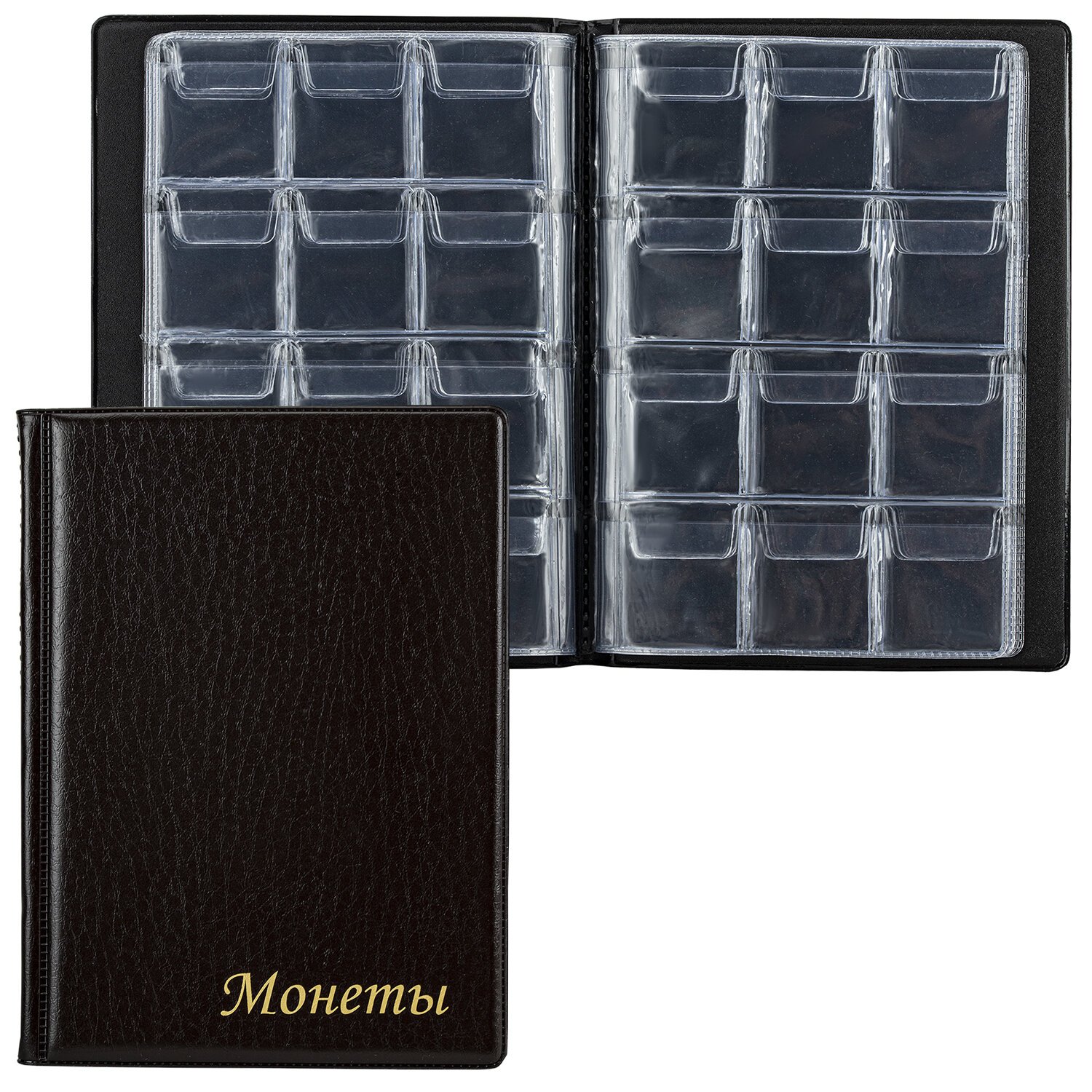 Альбом нумизмата для 120 монет, 125х175 мм, ПВХ, коричневый, STAFF, 238074