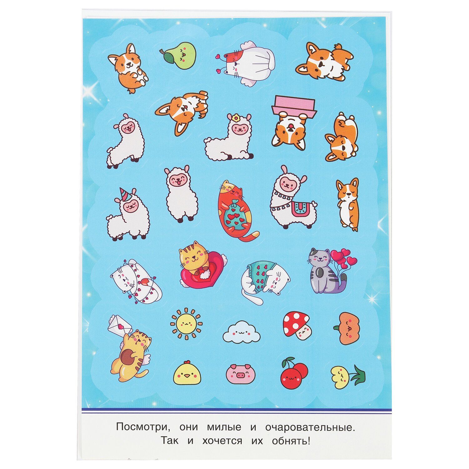Альбом с наклейками позволяет ребенку приклеивать стикеры на альбомы, тетради и открытки, а также придумывать свои милые истории.