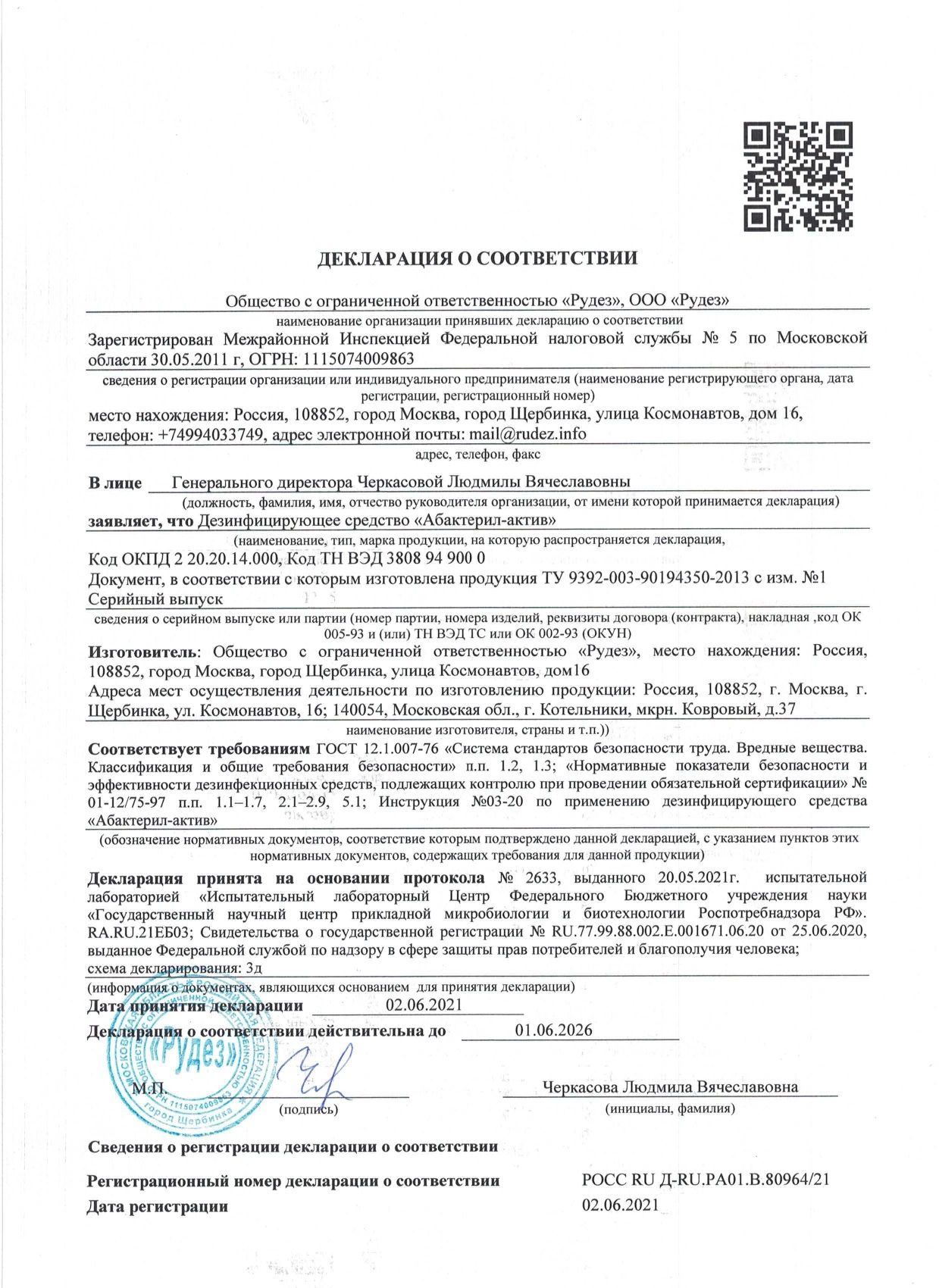 | Соответствует требованиям ГОСТа | ГОСТ 12.1.007-76 п.1.2, 1.3 |