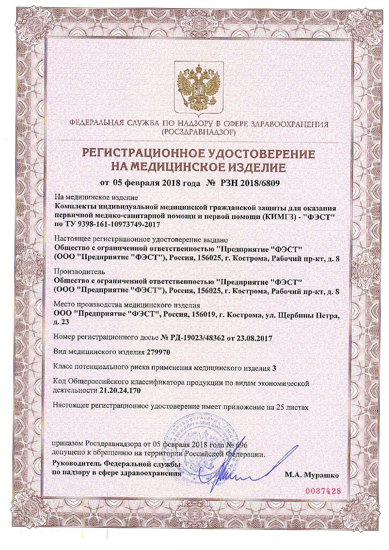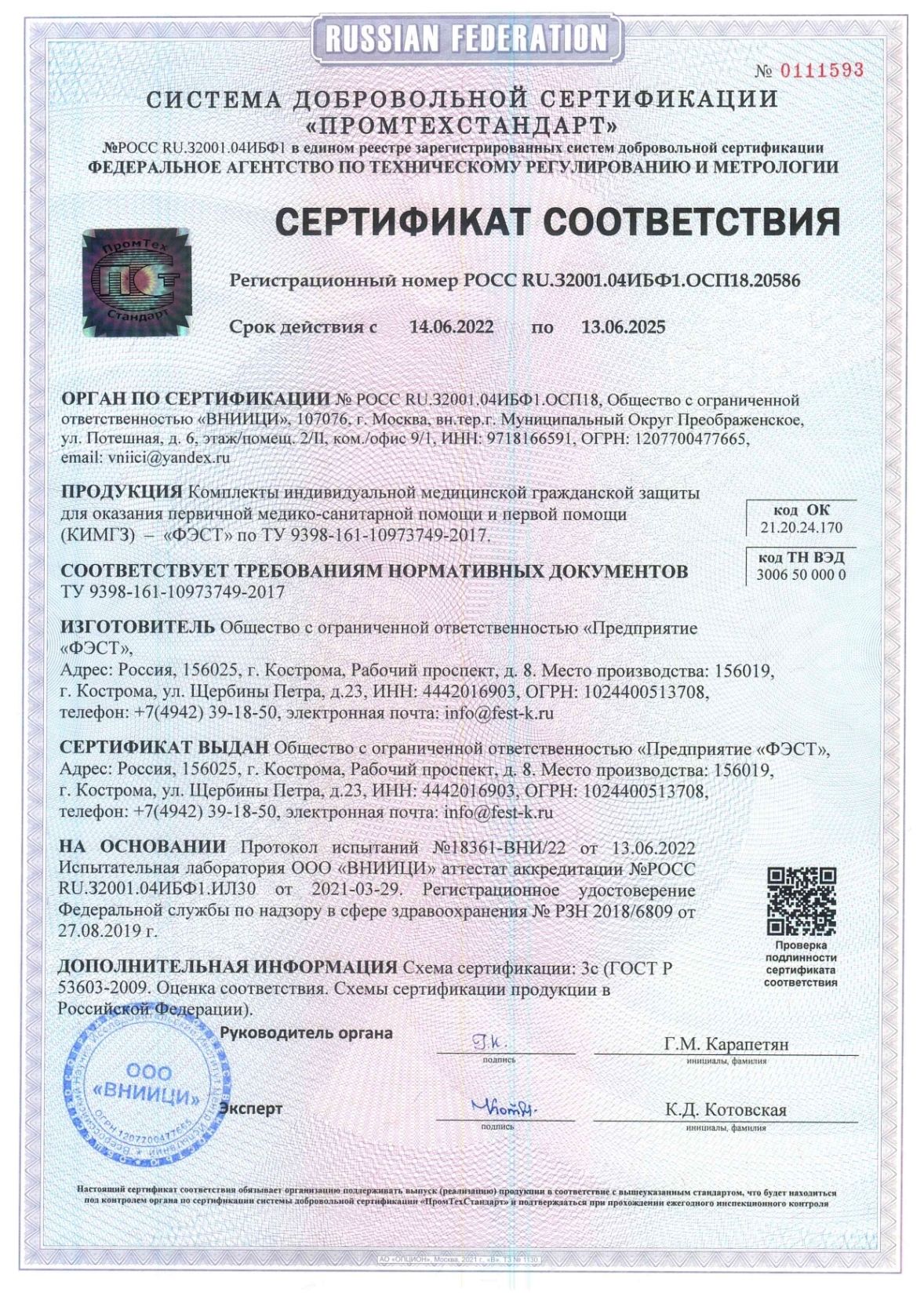 Аптечка базовый КИМГЗ-161 № 1 (9+К) ФЭСТ, сумка, по приказу № 23, 1306