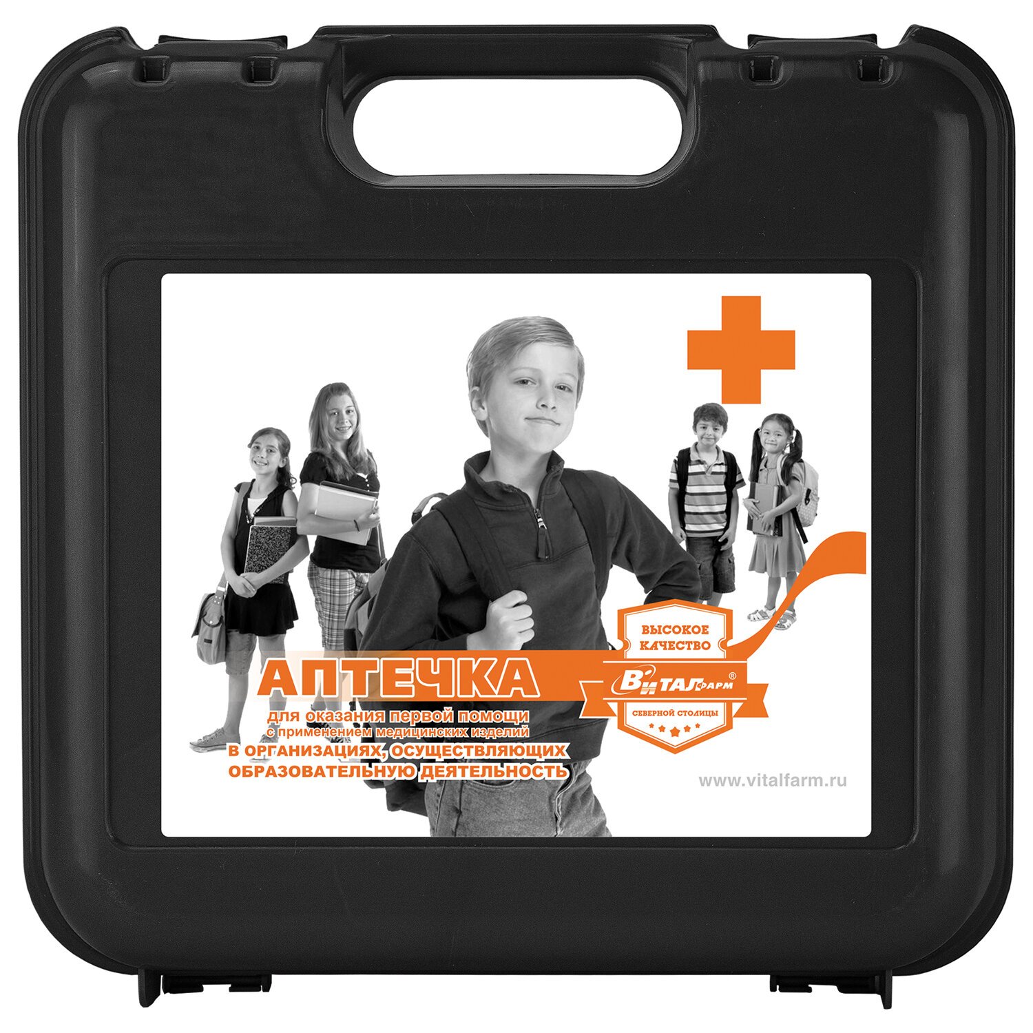 Аптечка для детских и учебных учреждений ВИТАЛФАРМ предназначена для оказания неотложной медицинской помощи вне медицинских учреждений.