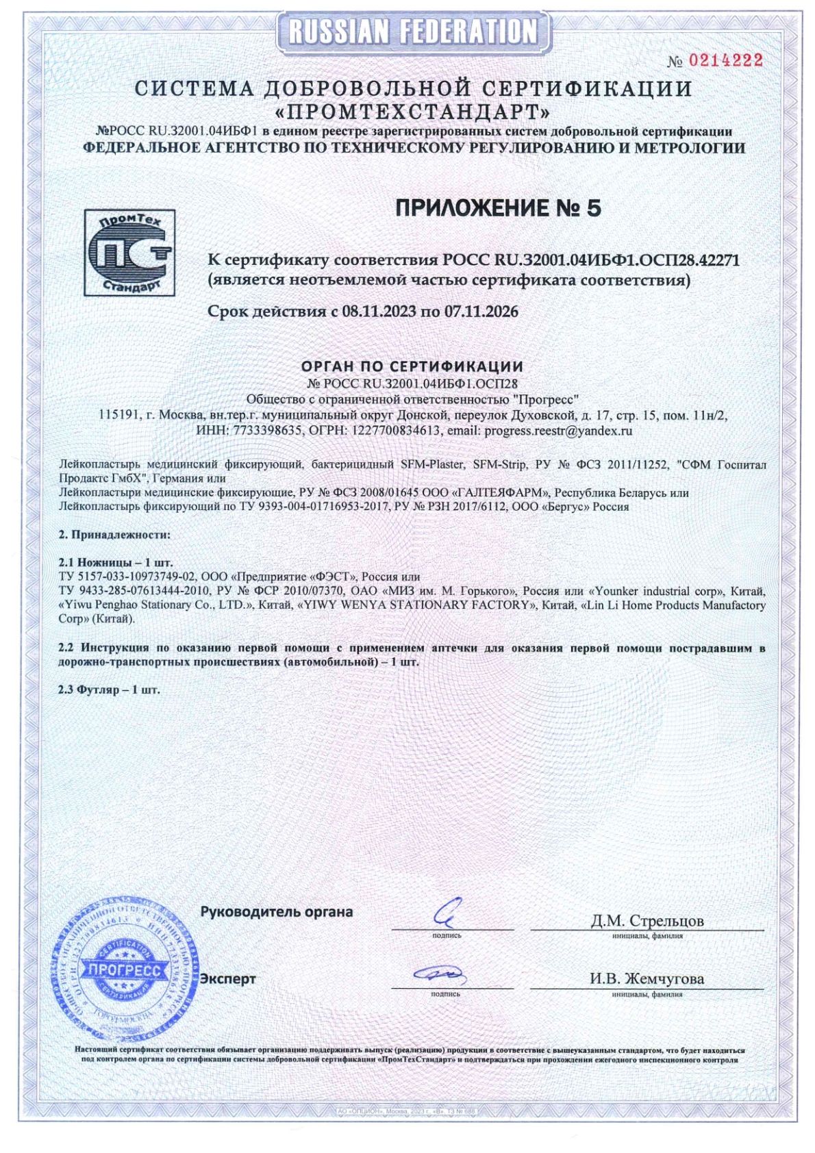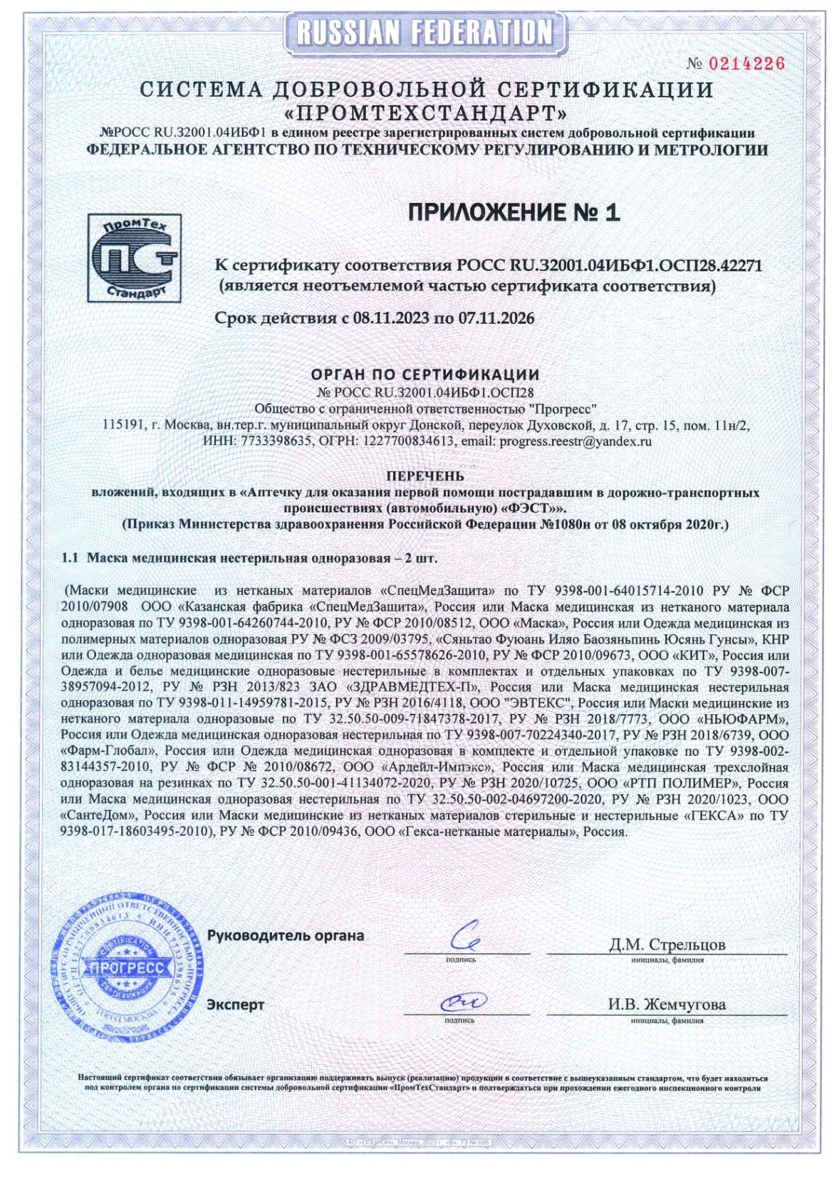 Автомобильная аптечка первой помощи укомплектована в соответствии с приказом Министерства здравоохранения РФ №1080н от 8 октября 2020 г.