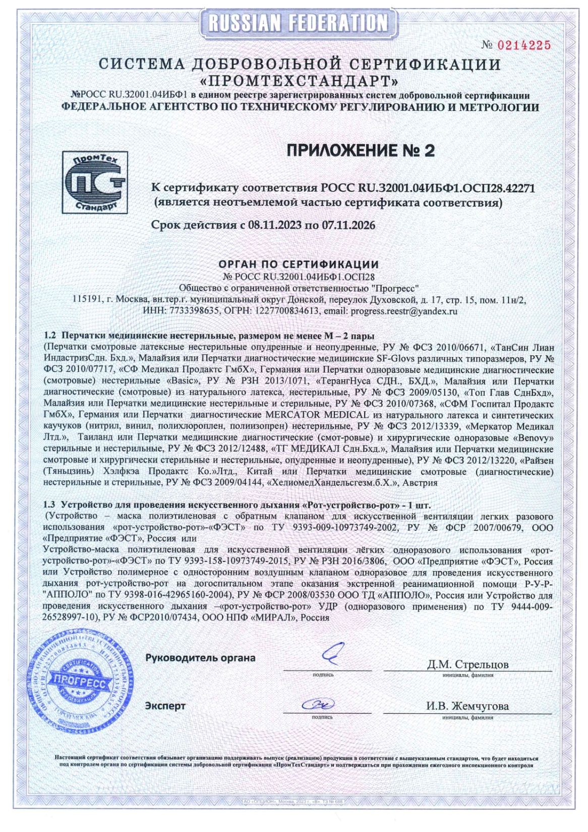 2 Перчатки медицинские нестерильные, размером не менее М 2 пары