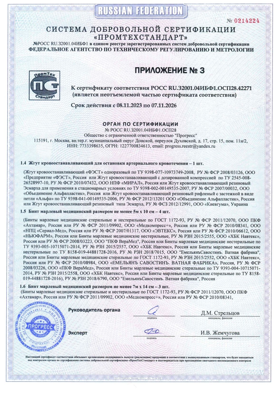 4 Жгут кровоостанавливающий для остановки артериального кровотечения 1 шт.