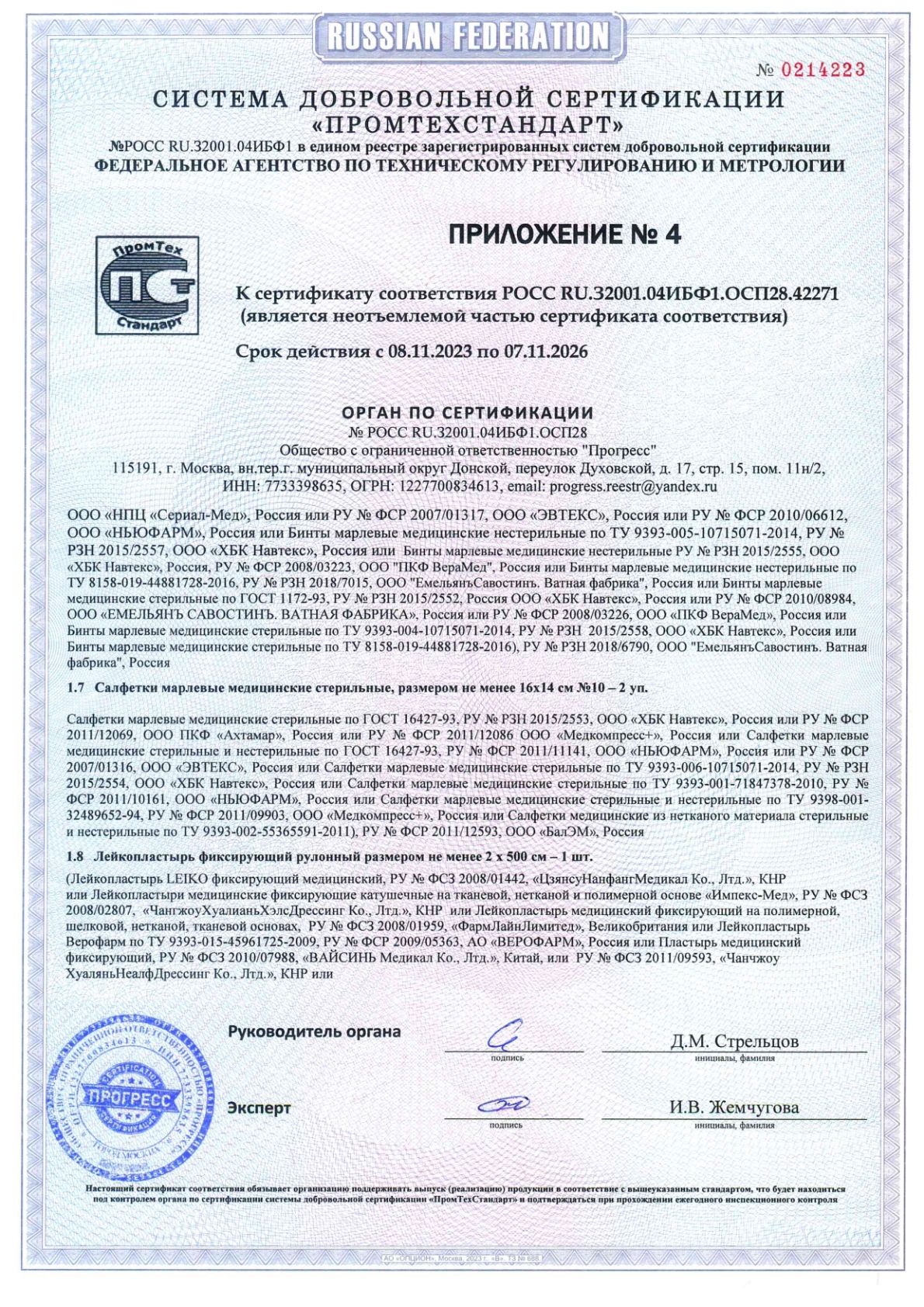 7 Салфетки марлевые медицинские стерильные размером не менее 16 х 14 см № 10 2 уп.