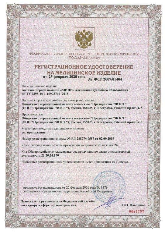 Аптечка первой помощи индивидуальная ФЭСТ, футляр полистирол, № 6, 1077