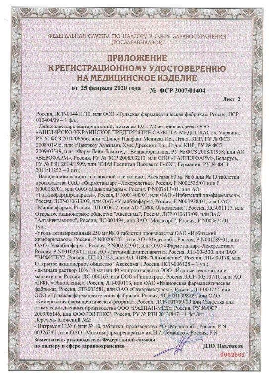 8. Аммиака раствор 10%, 10 мл или 40 мл, или салфетка для стимуляции дыхания - 1 фл./ 1 шт.