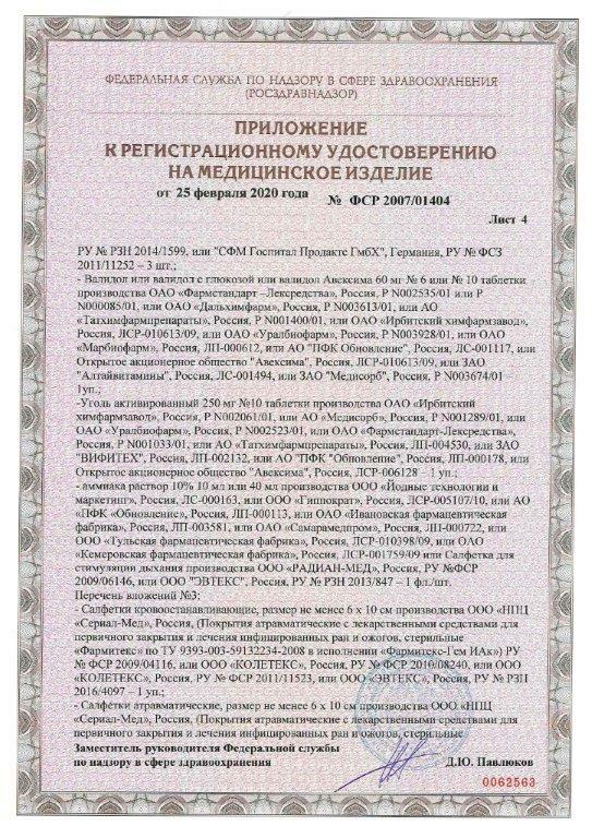 4. Бинт стерильный 5 м х 10 cм или 5 м х 7 см - 1 шт.
