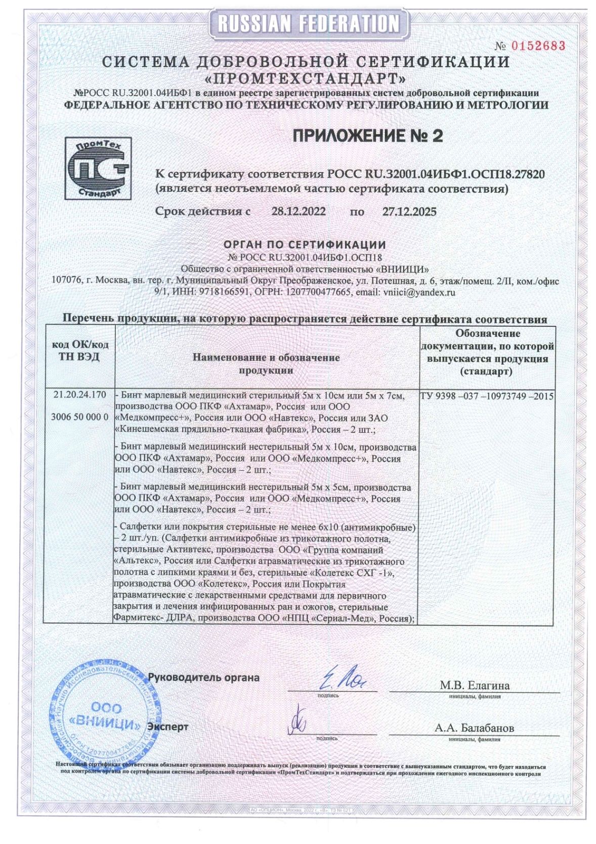 6. Бинт стерильный (5 м х 10 см или 5 м х 7 см) - 2 шт.