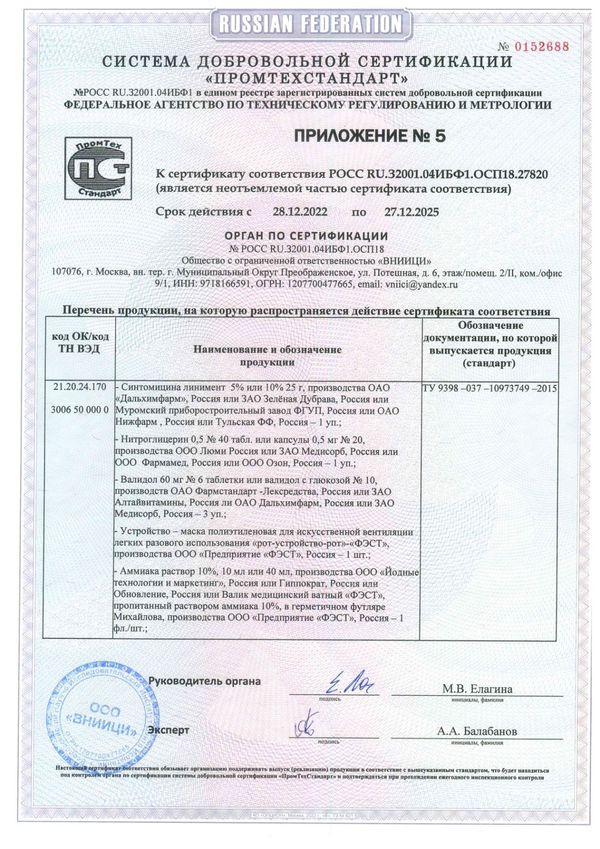 18. Линимент синтомицина (5% или 10%, 25 г) - 1 туб.