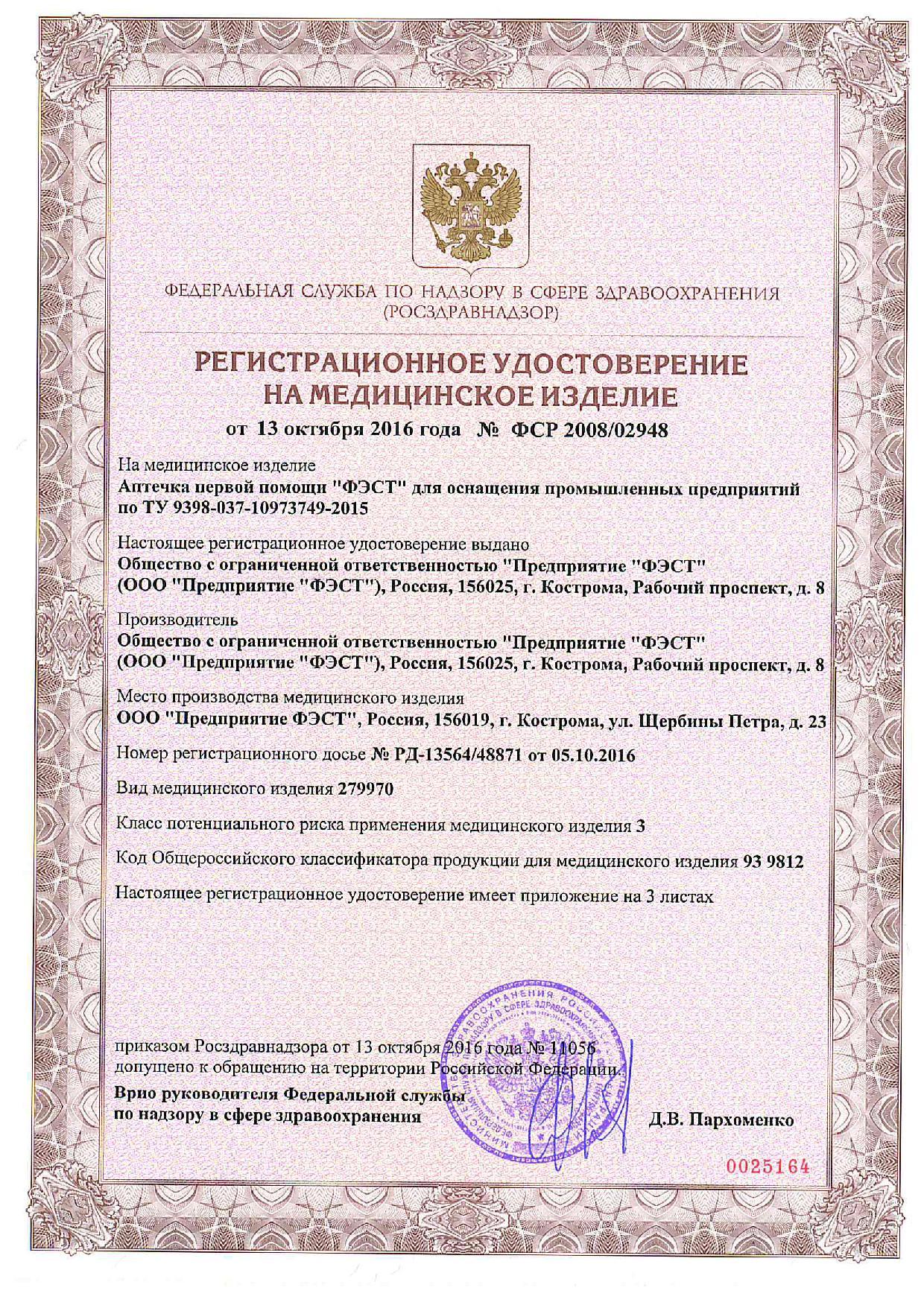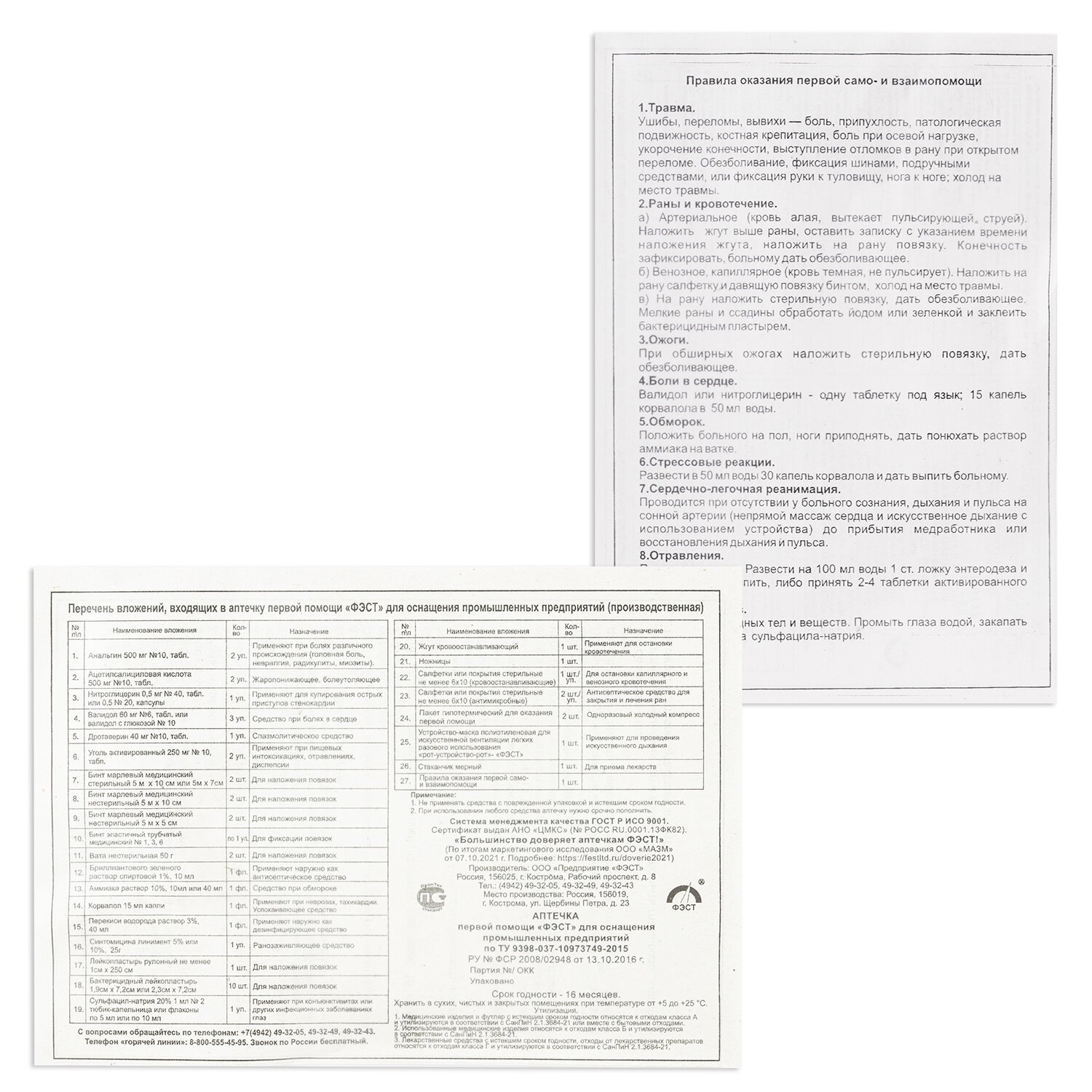 Аптечка первой помощи производственная ФЭСТ, до 30 человек, текстильный футляр, № 7.2, 1044