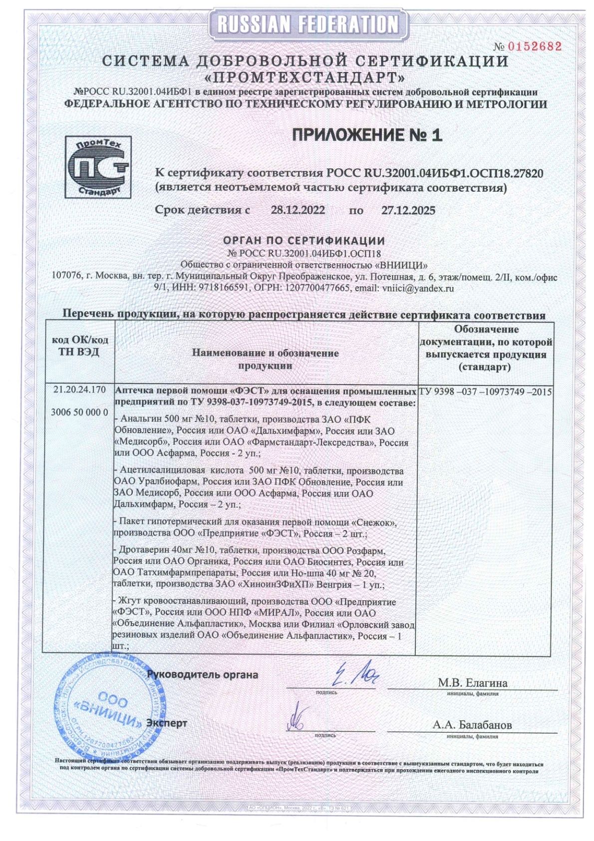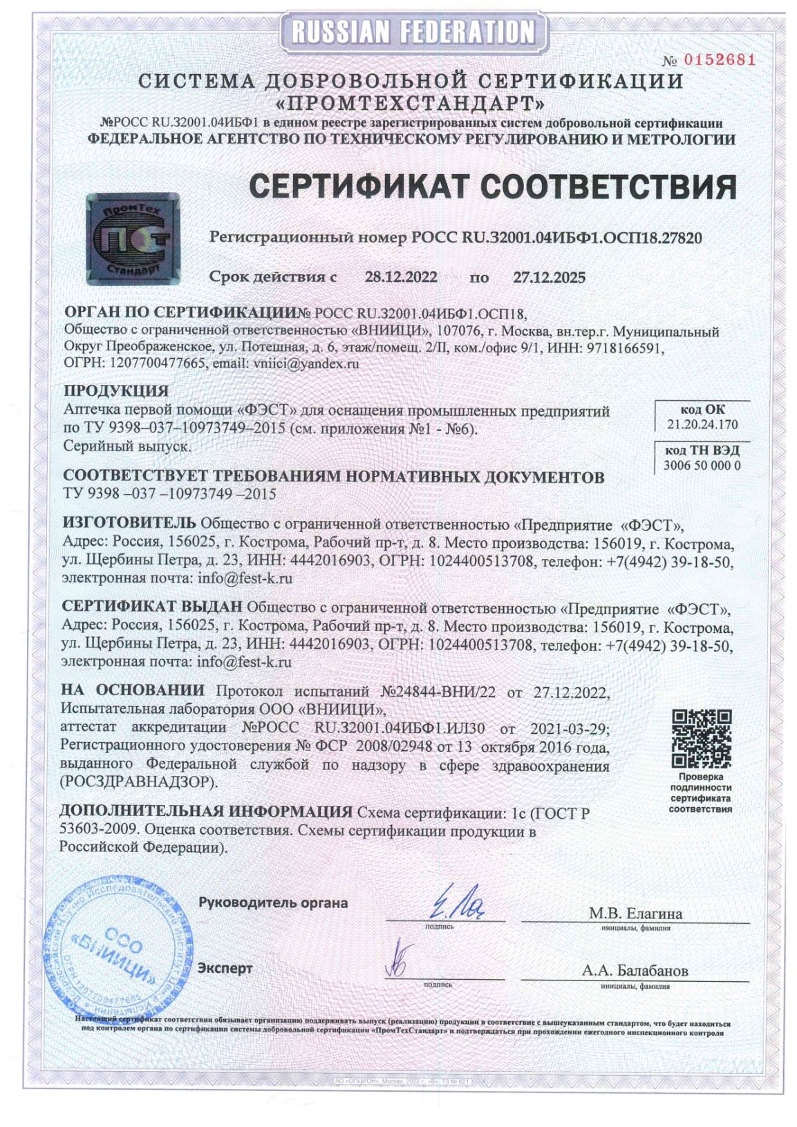 Аптечка первой помощи производственная ФЭСТ, до 30 человек, текстильный футляр, № 7.2, 1044