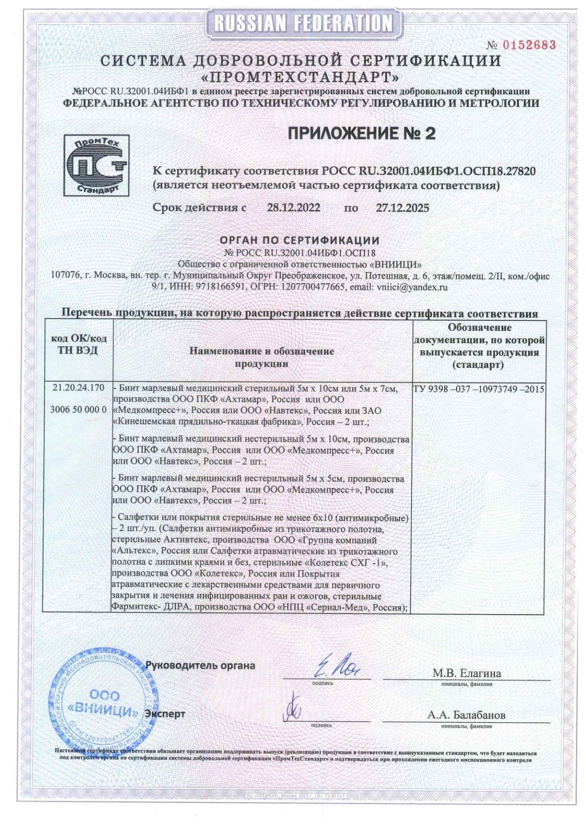 6. Бинт стерильный 5 м х 10 см или 5 м х 7 см - 2 шт.
