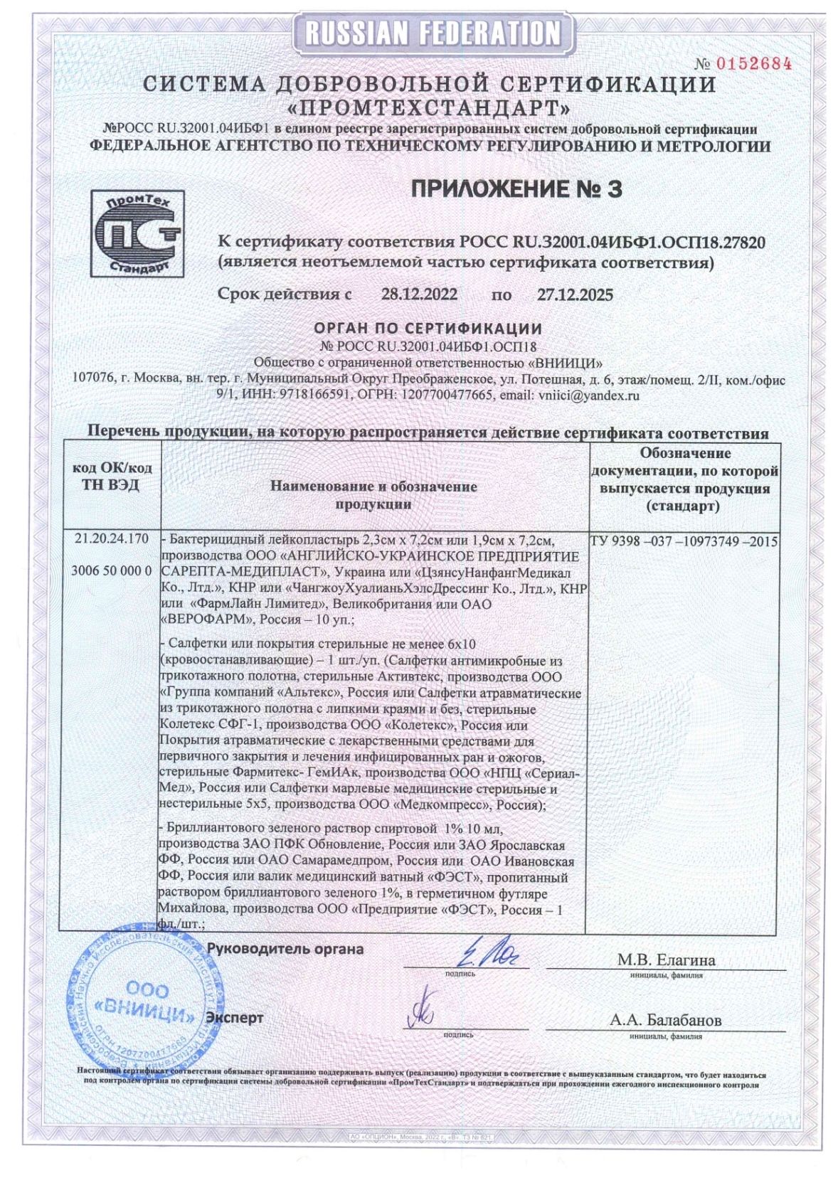 3. Гипотермический (охлаждающий) пакет - 2 шт.