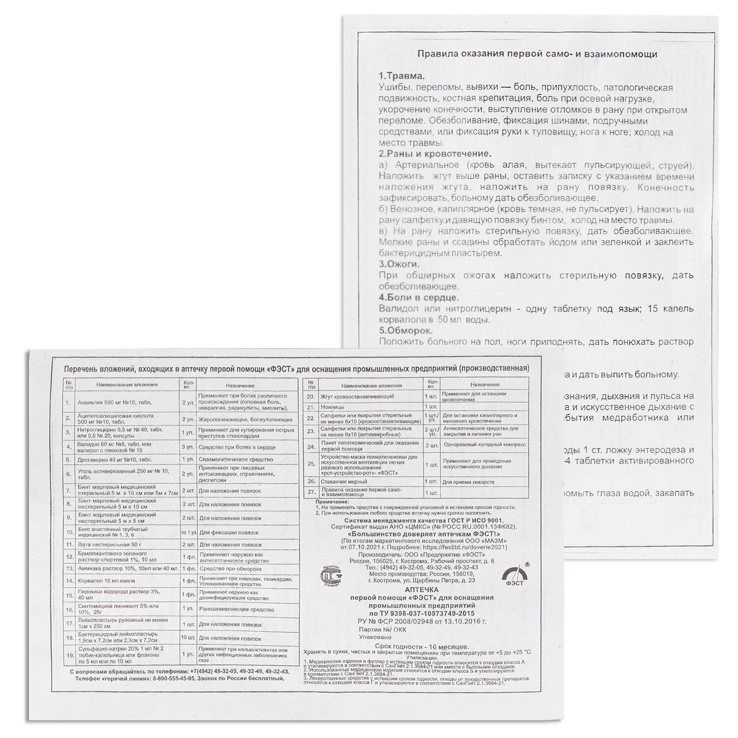 Аптечка первой помощи офисная ФЭСТ, до 30 человек, футляр полистирол, № 5.1, 1016