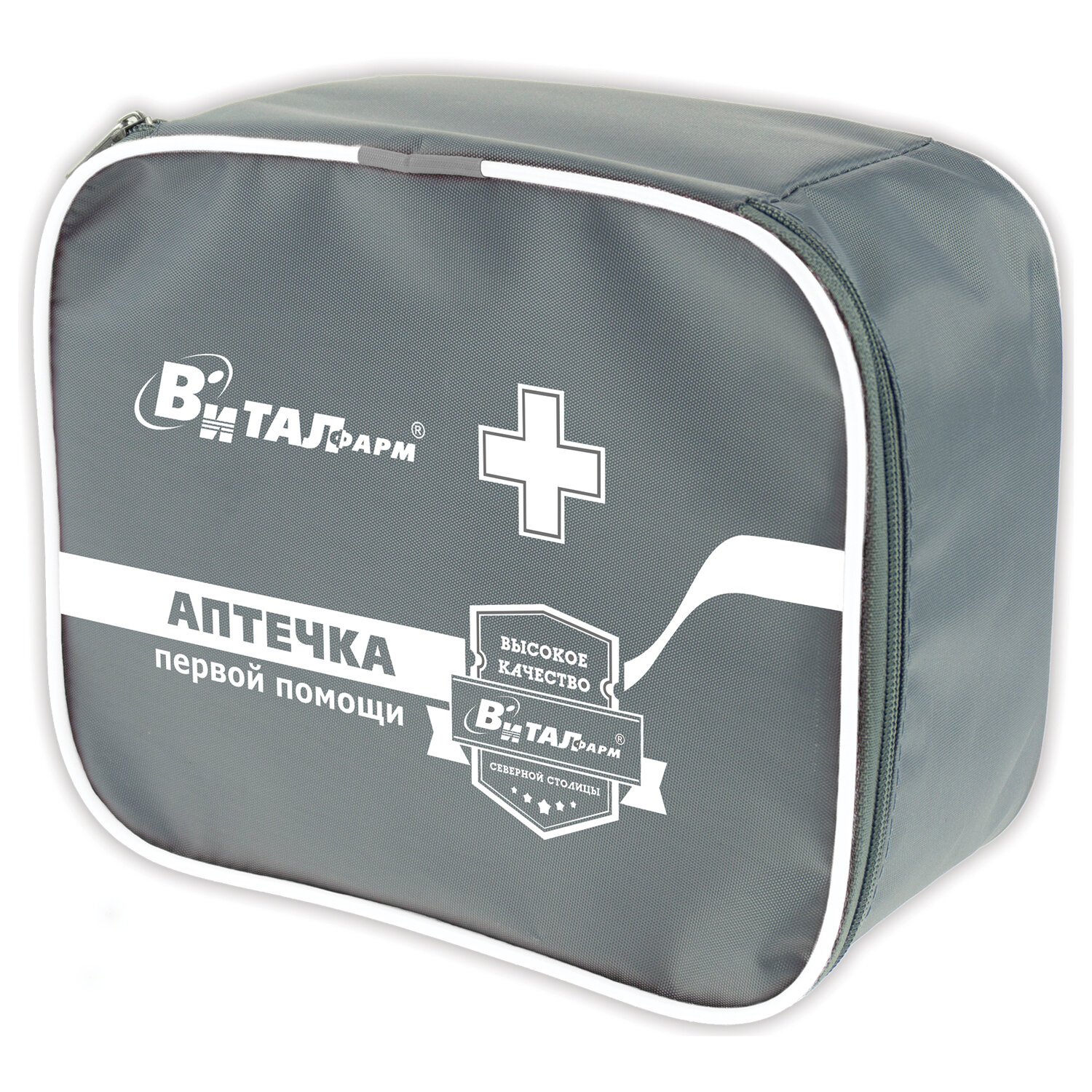 Аптечка ВИТАЛФАРМ первой помощи работникам в тканевой сумке предназначена для оказания неотложной медицинской помощи работникам вне медицинских учреждений.