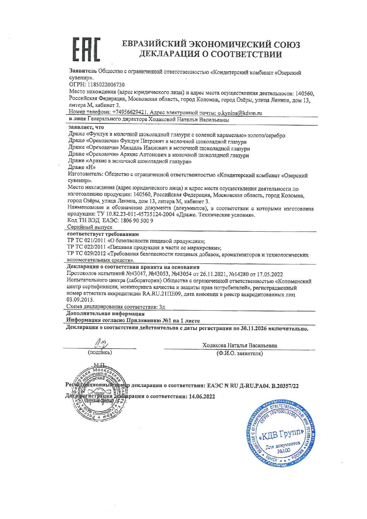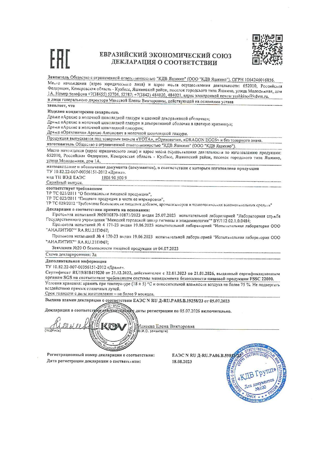 Состав продукта: арахис жареный, сахар, масла растительные, какао тертое, молоко сухое цельное, сыворотка сухая молочная, загуститель: гуммиарабик; какао-порошок, эмульгаторы: лецитин соевый, Е476, подсолнечный лецитин; ароматизатор. Возможно наличие следов глютена, яичных продуктов.