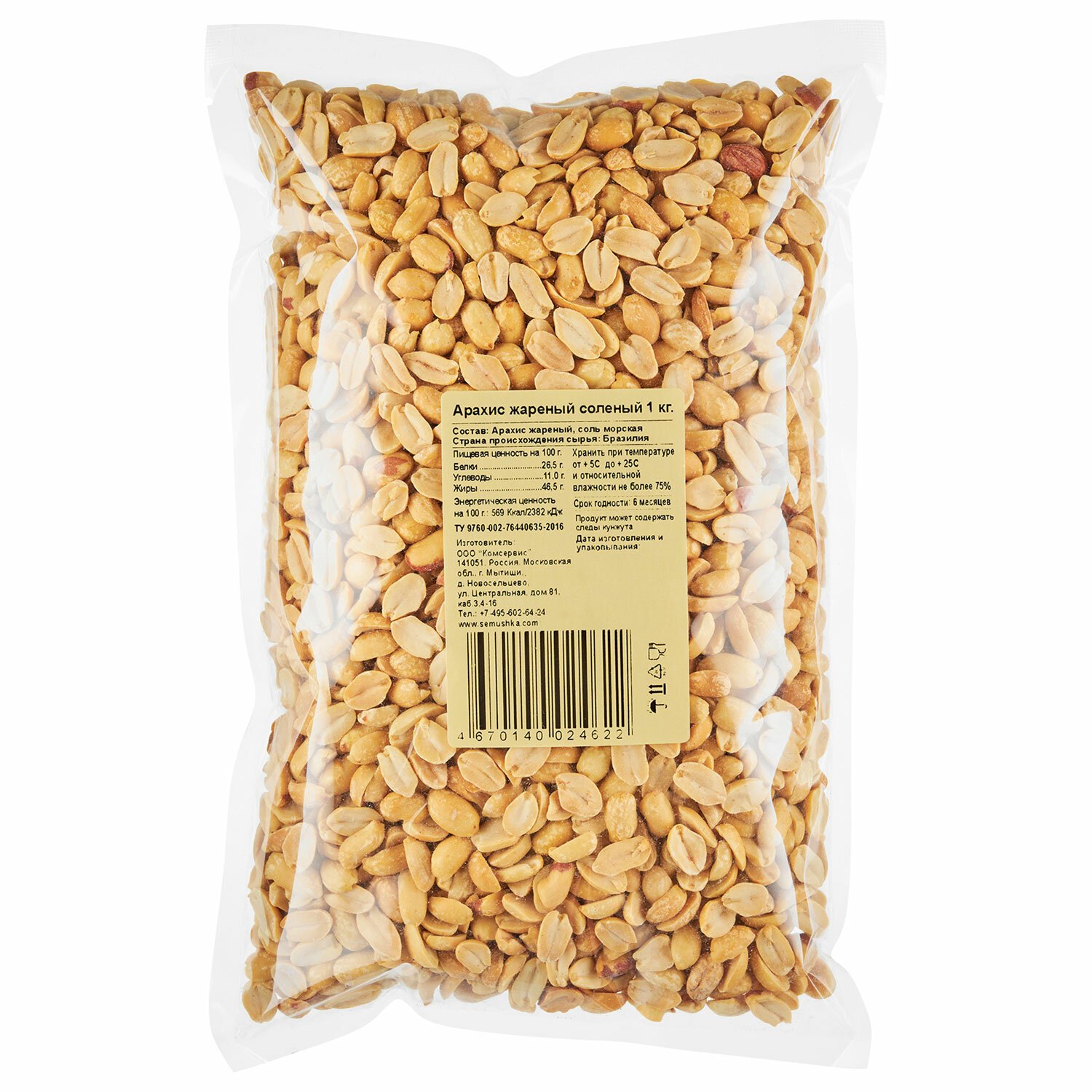 Арахис жареный соленый, СЕМУШКА, 1 кг