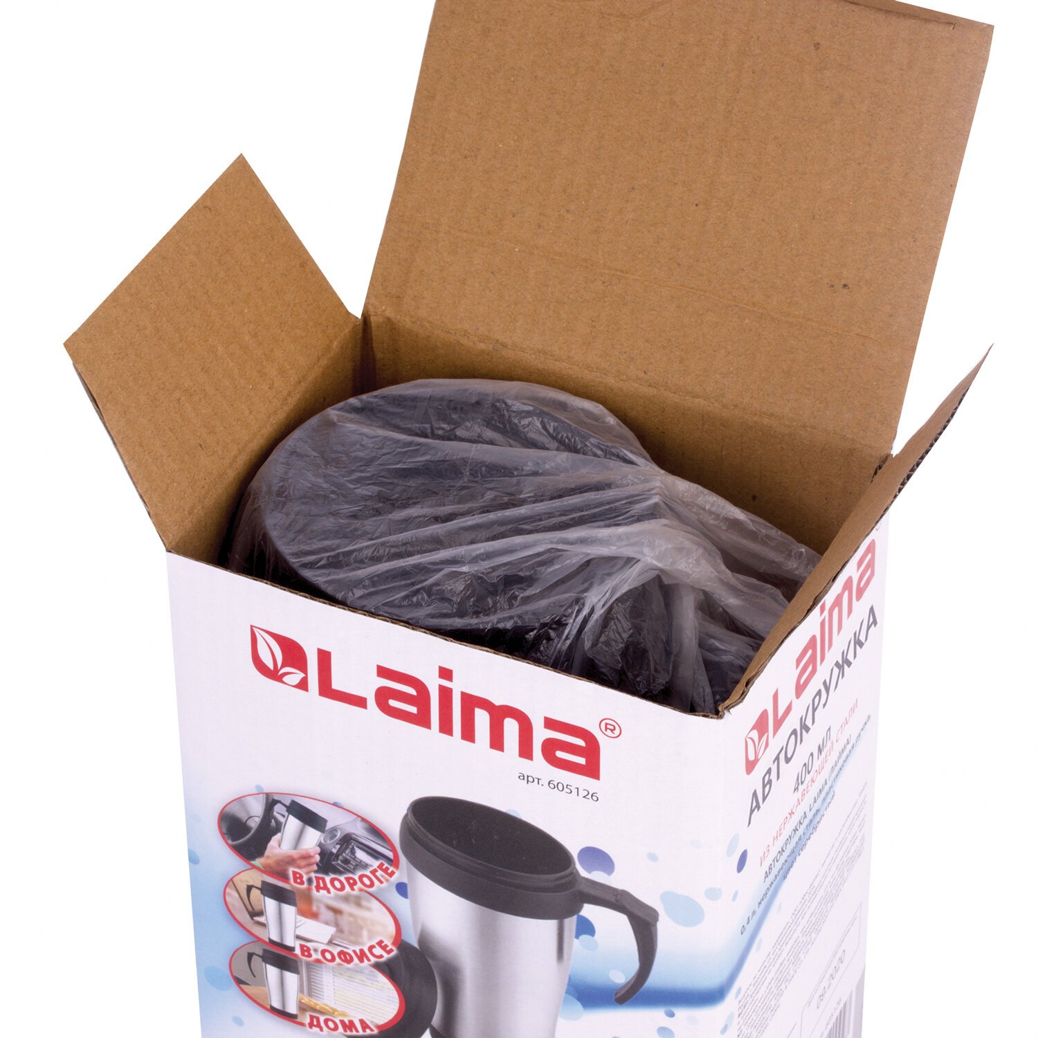 Автокружка 400 мл, термостакан с ручкой, винтовая крышка-клапан, пластик/сталь, серебро, LAIMA, 605126