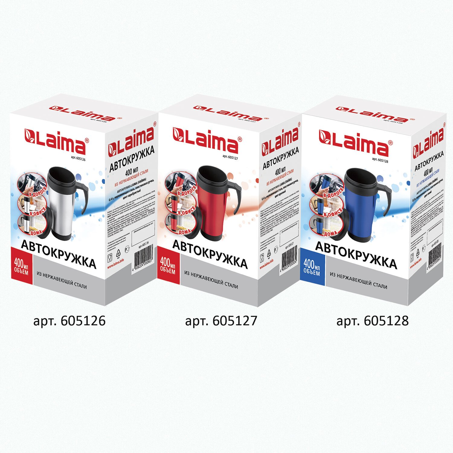 Автокружка 400 мл, термостакан с ручкой, винтовая крышка-клапан, пластик/сталь, красная, LAIMA, 605127