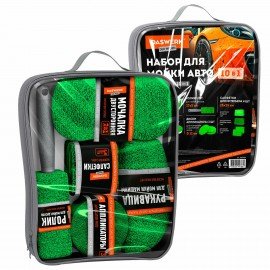 Набор для мойки авто и детейлинга 10 в 1, зеленый, СУМКА ДЛЯ ХРАНЕНИЯ В КОМПЛЕКТЕ, DASWERK, 609484