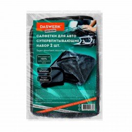 Салфетки из микрофибры для авто супервпитывающие КОМПЛЕКТ 2 шт. (1 шт. – 50х60 см, 1 шт. – 20х20 см), DASWERK, 609485