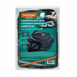 Салфетки из микрофибры для авто супервпитывающие КОМПЛЕКТ 3 шт. (2 шт. – 50х60 см, 1 шт. – 20х20 см), DASWERK, 609486