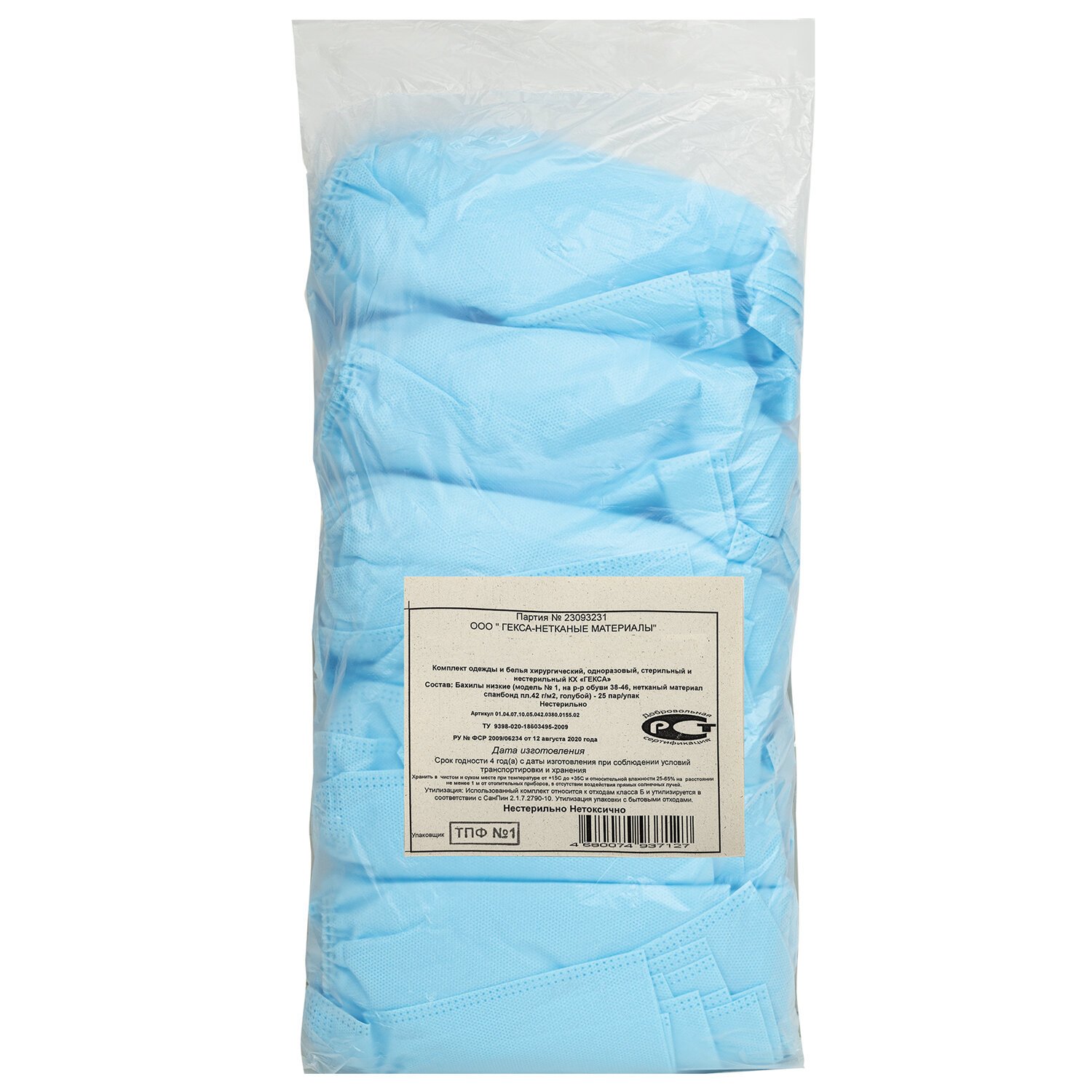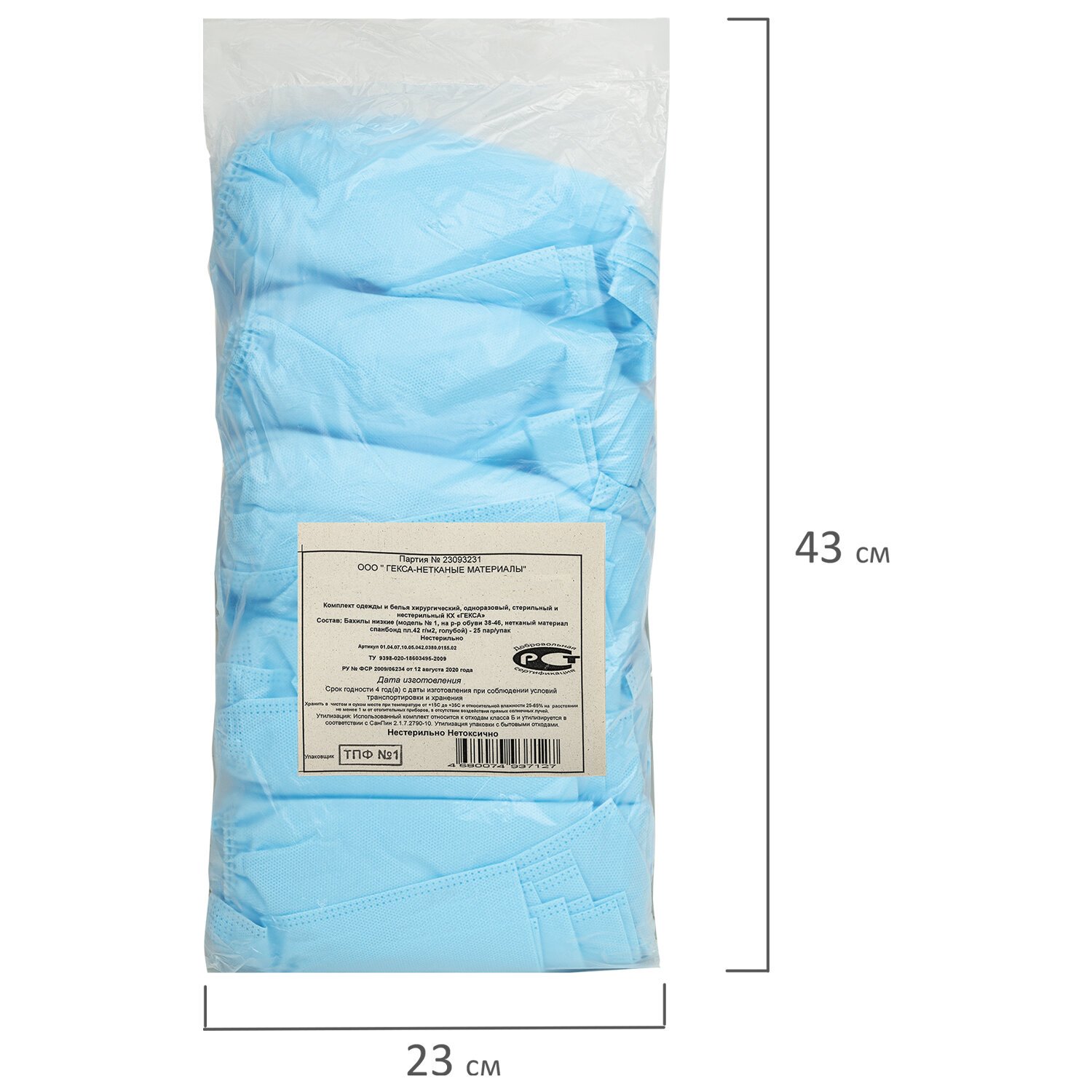 Бахилы из спанбонда низкие КОМПЛЕКТ 50 штук (25 пар), 42 г/м2 ГЕКСА, голубые