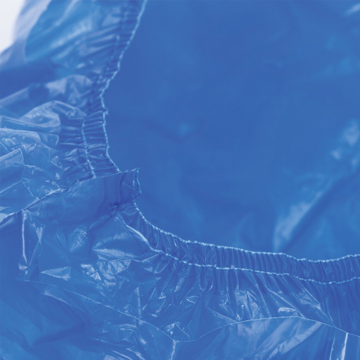 Являются самым крепким одноразовым изделием размером 40х14 см и весом 10 г. Из-за высокой плотности 100 мкм данные бахилы предназначены для длительного использования. В верхнюю часть бахилы вварена двойная резинка. На торцах расположены два дополнительных шва для более надежной фиксации резинки. Материал двухслойных бахил – полиэтилен низкого давления и полиэтилен высокого давления: