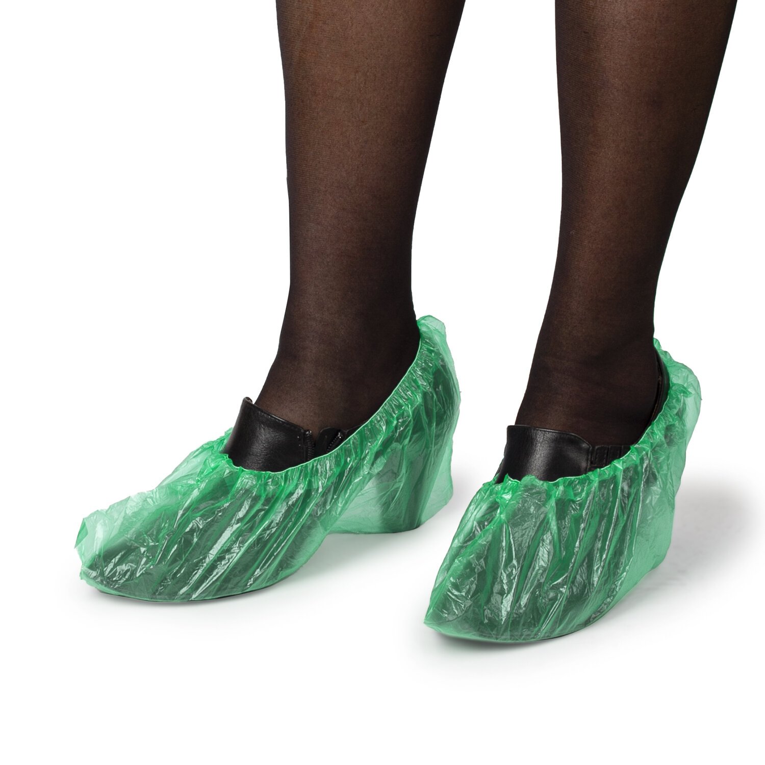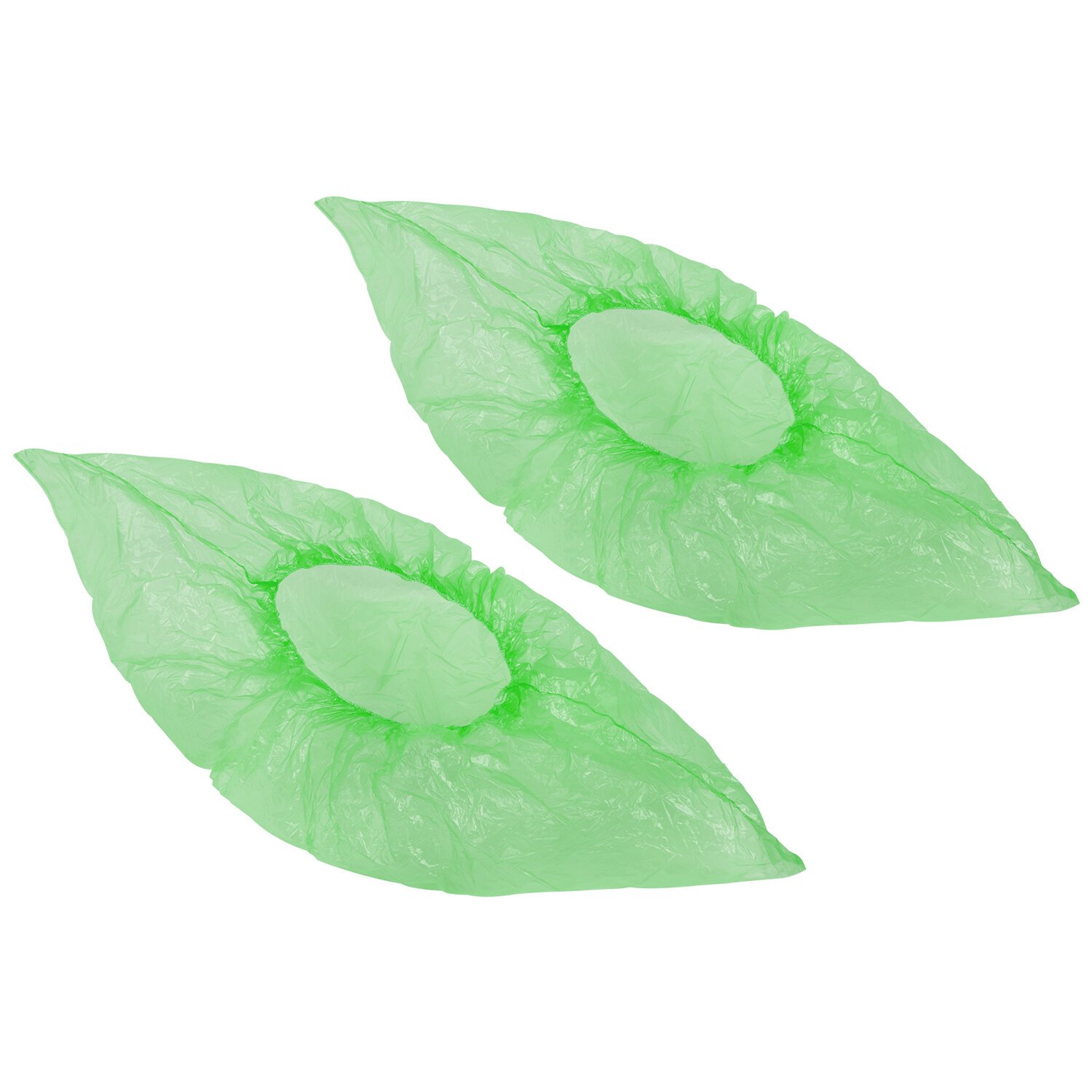 Бахилы одноразовые зеленого цвета с одинарной резинкой, однослойные.