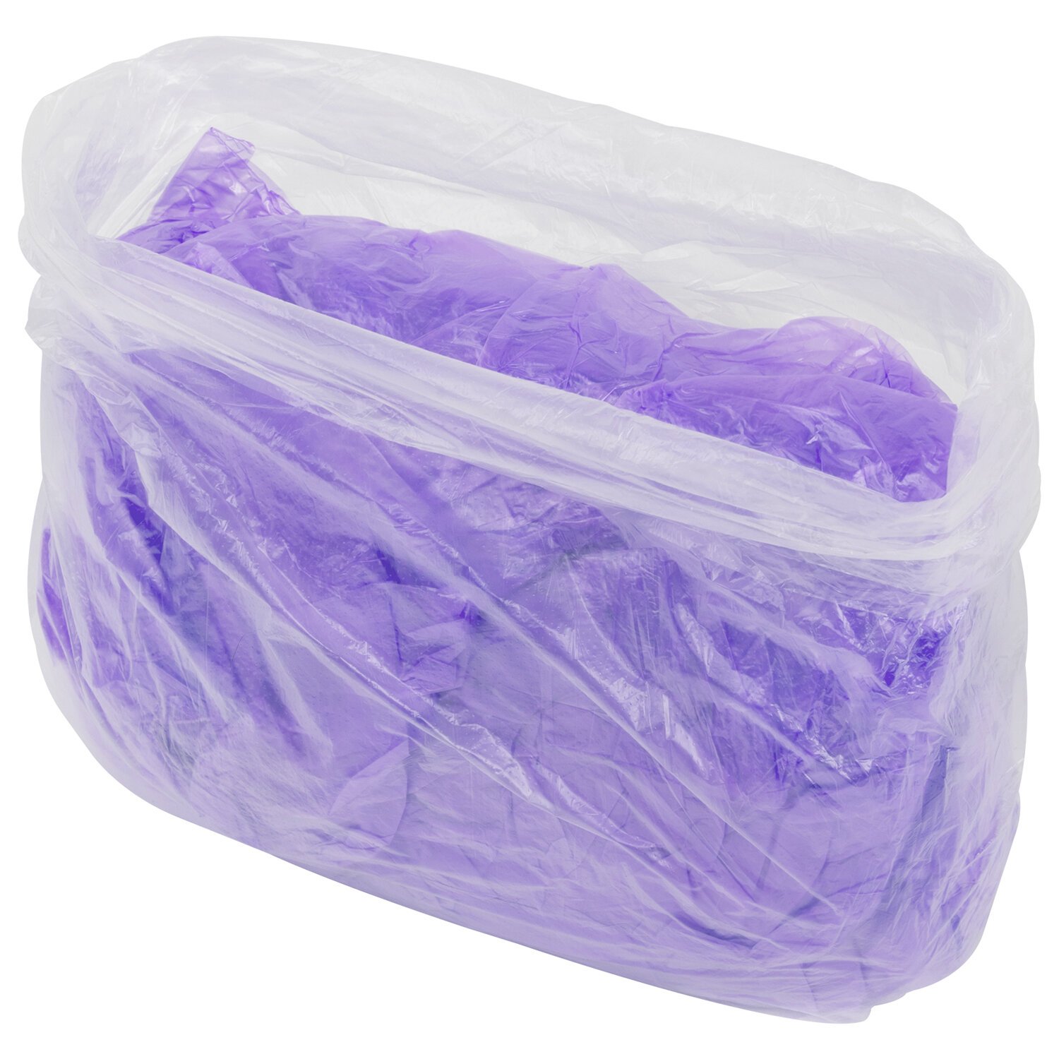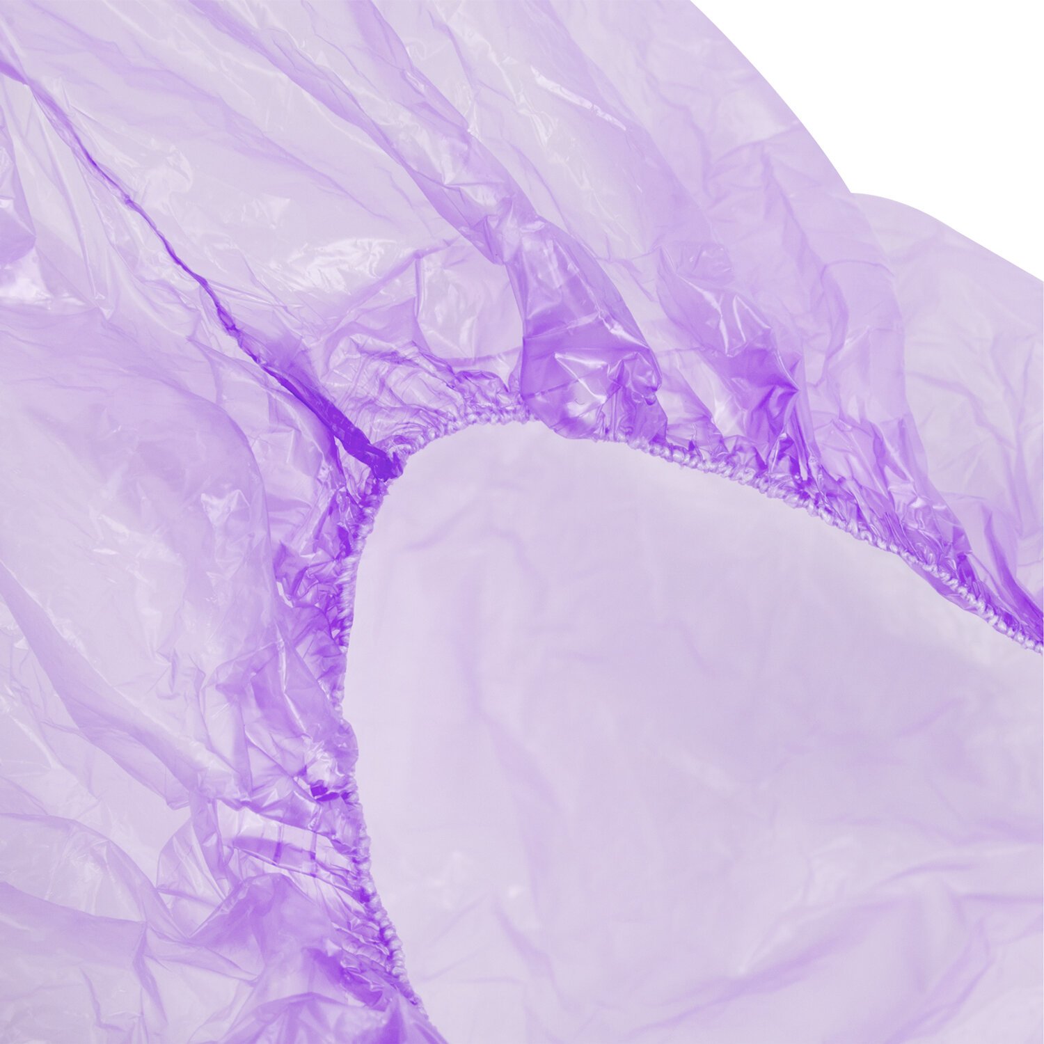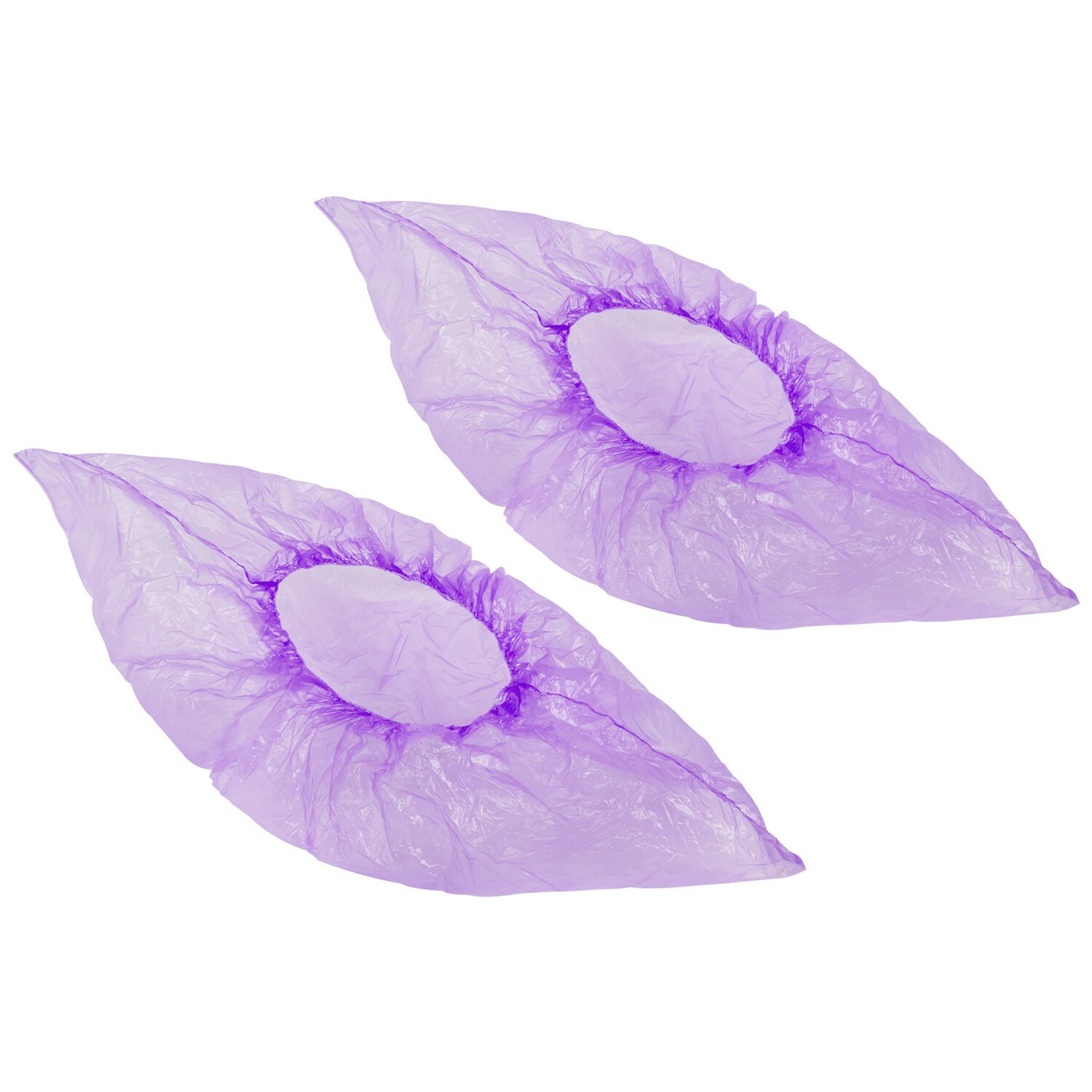 Бахилы одноразовые фиолетового цвета с одинарной резинкой, однослойные.