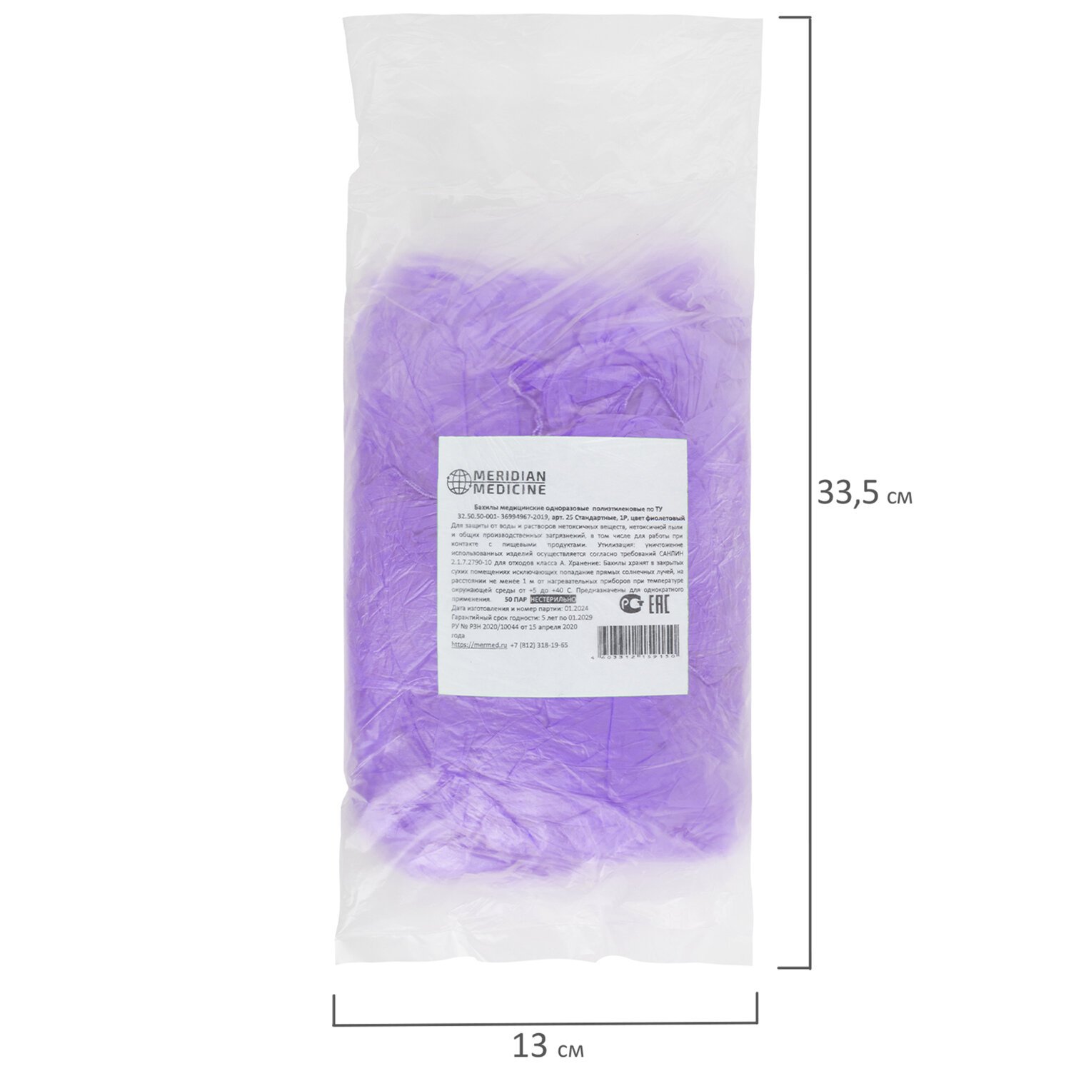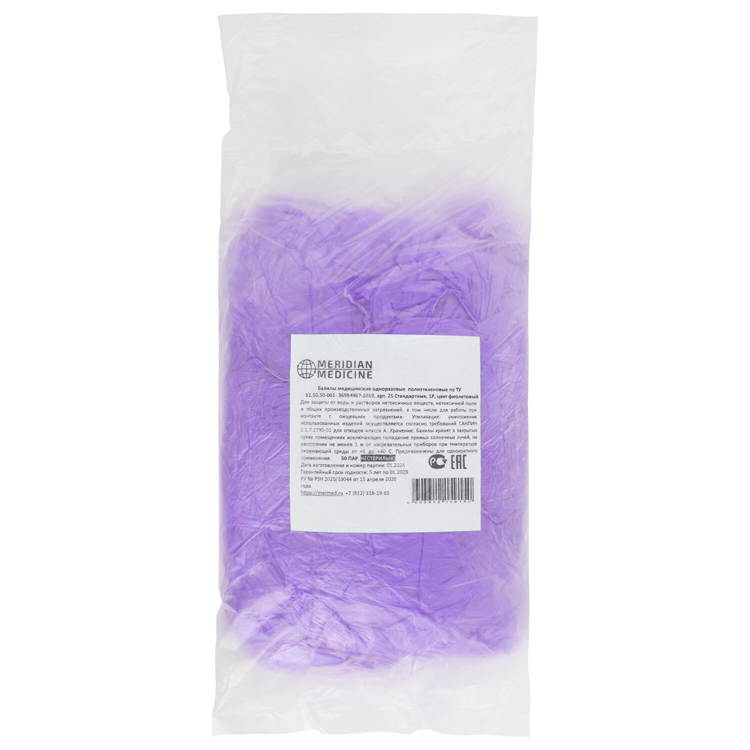 Бахилы MERIDIAN СТАНДАРТ 2,3 грамма, фиолетовые, КОМПЛЕКТ 100 штук (50 пар), 40х15 см