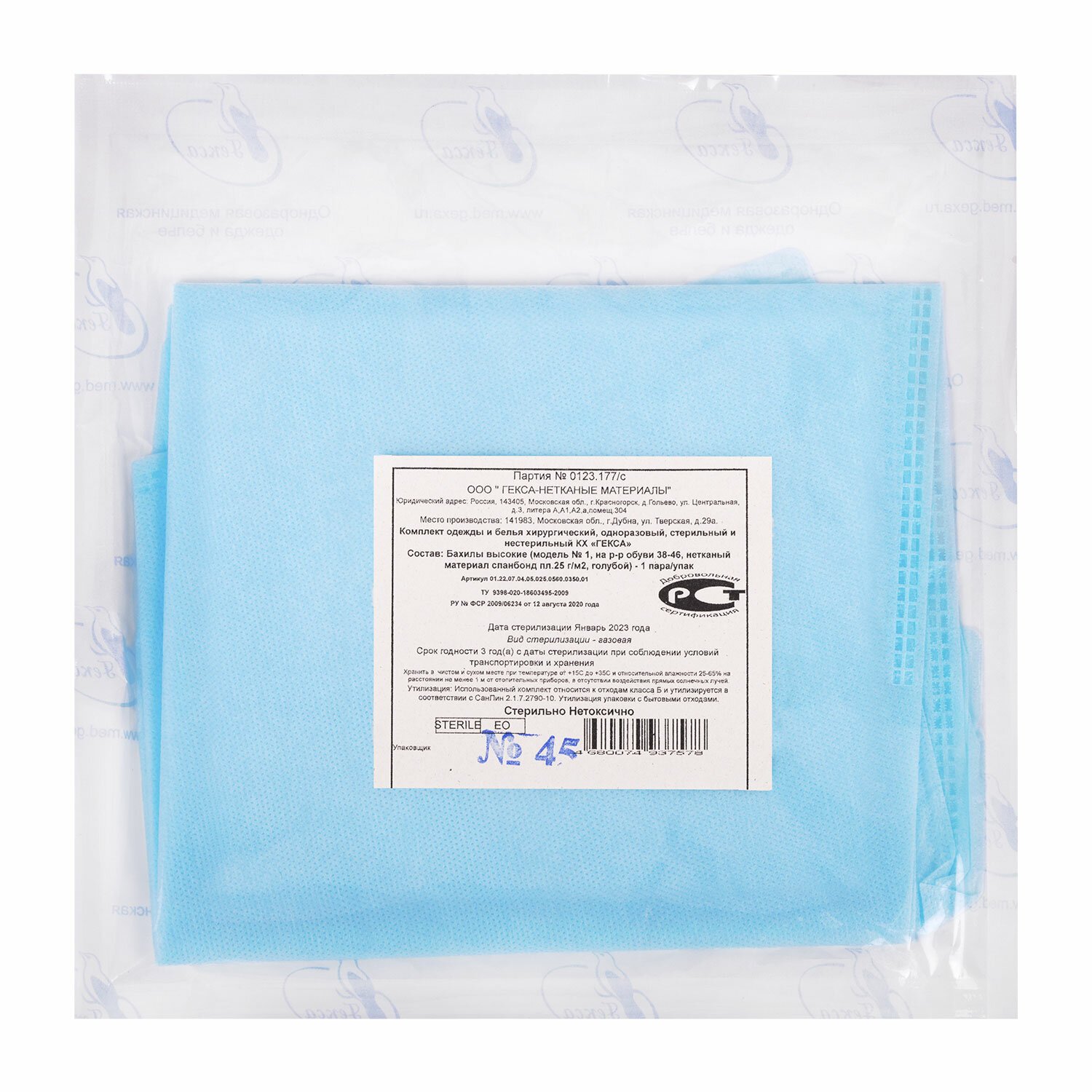 Бахилы стерильные из спанбонда высокие с завязками, 25 г/м2, одна пара в индивидуальной упаковке