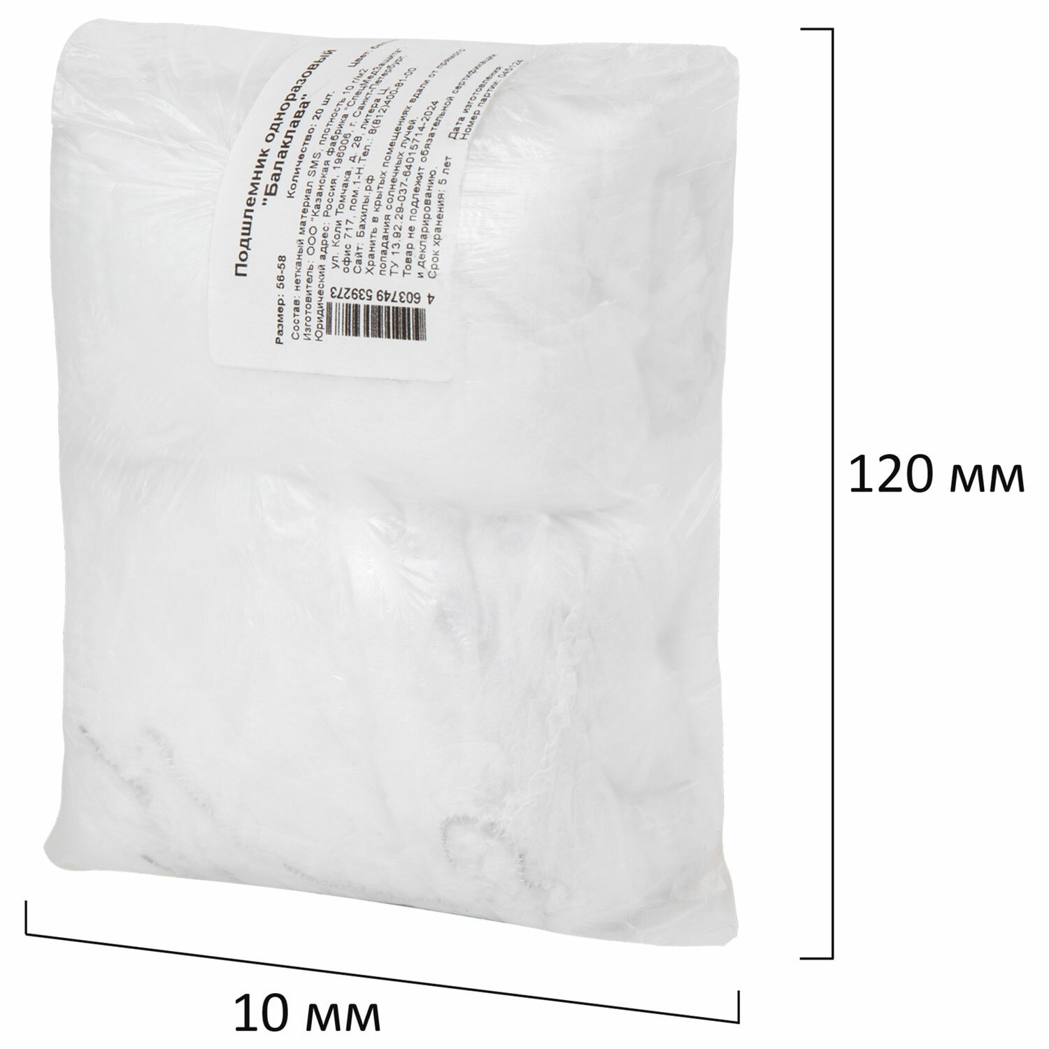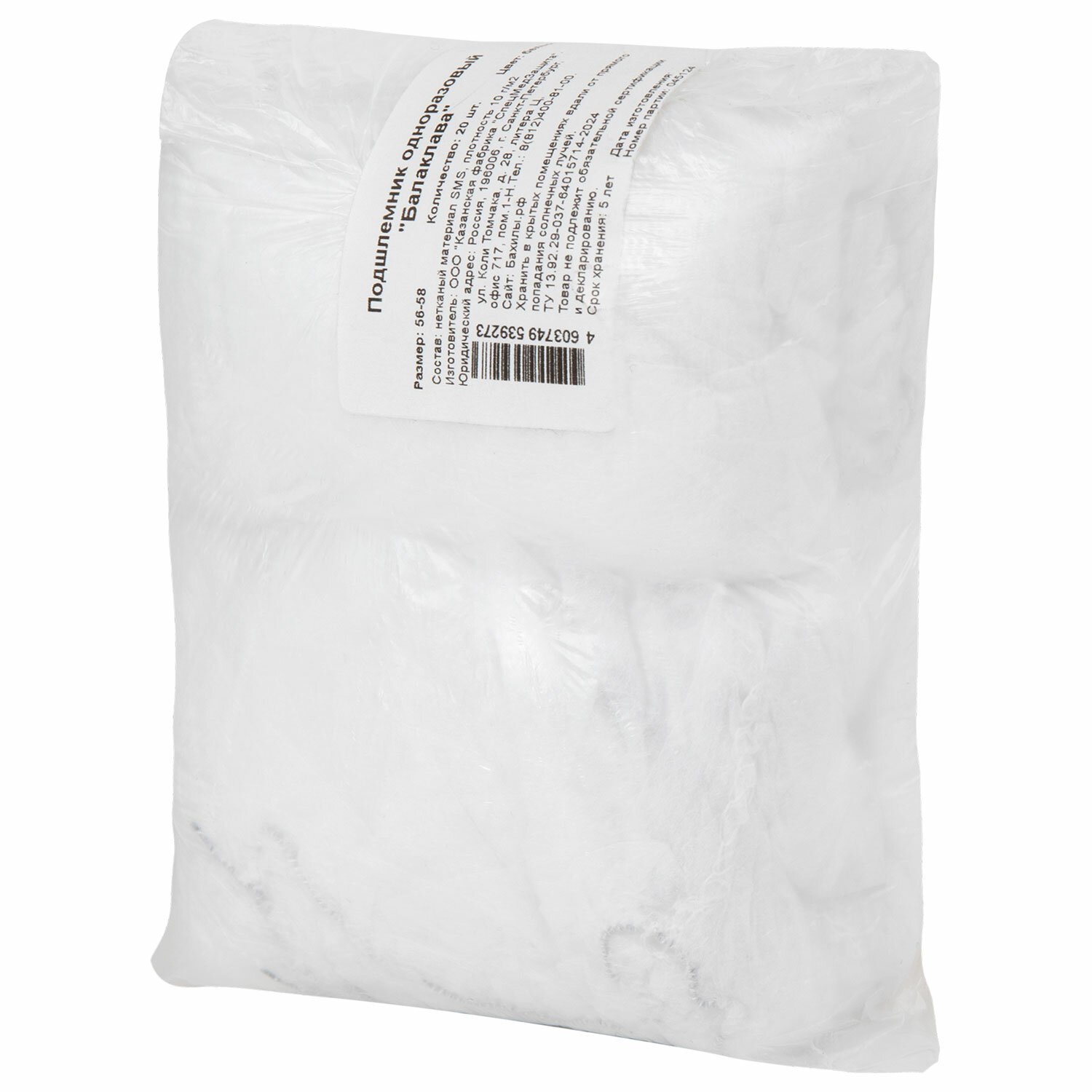 Балаклава (подшлемник) одноразовая КОМПЛЕКТ 20 штук, спанбонд, белая, SMZ