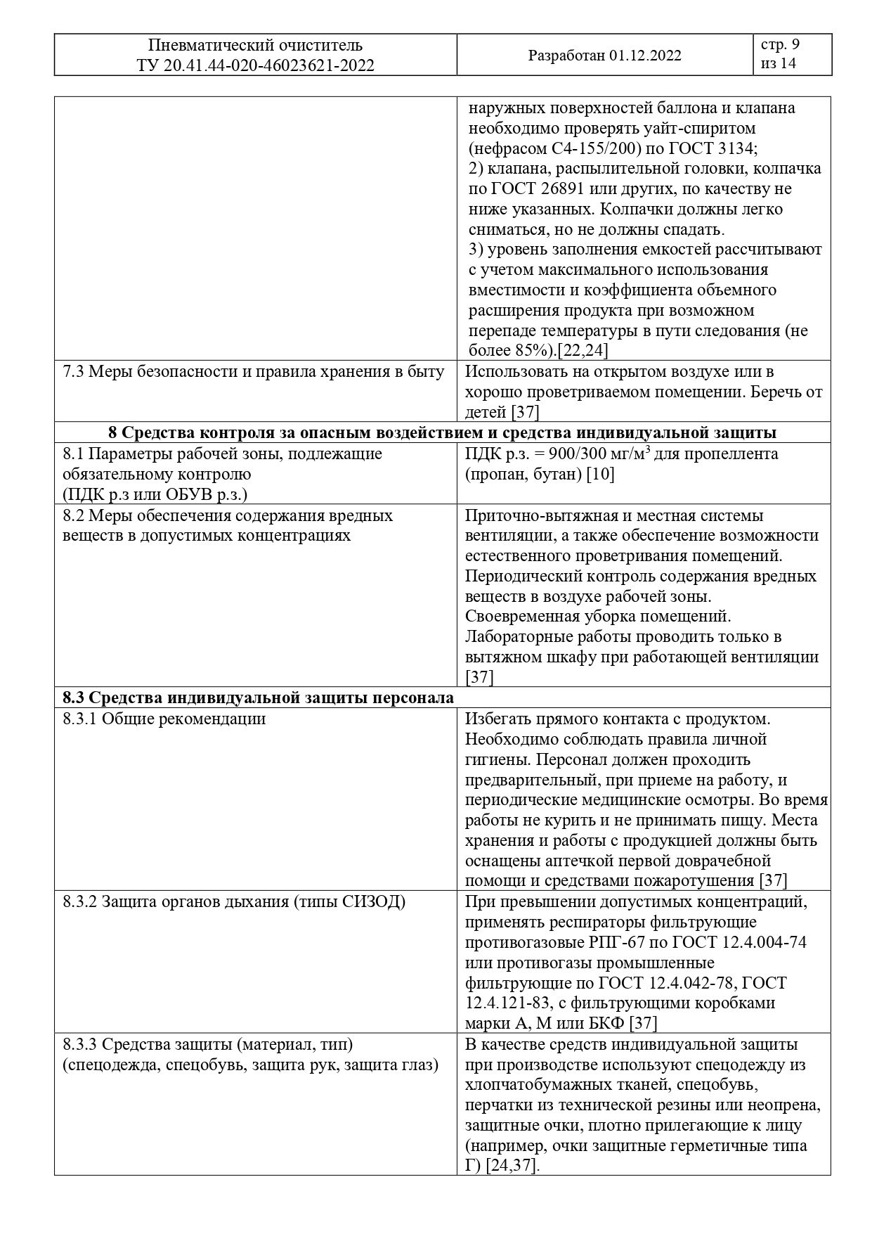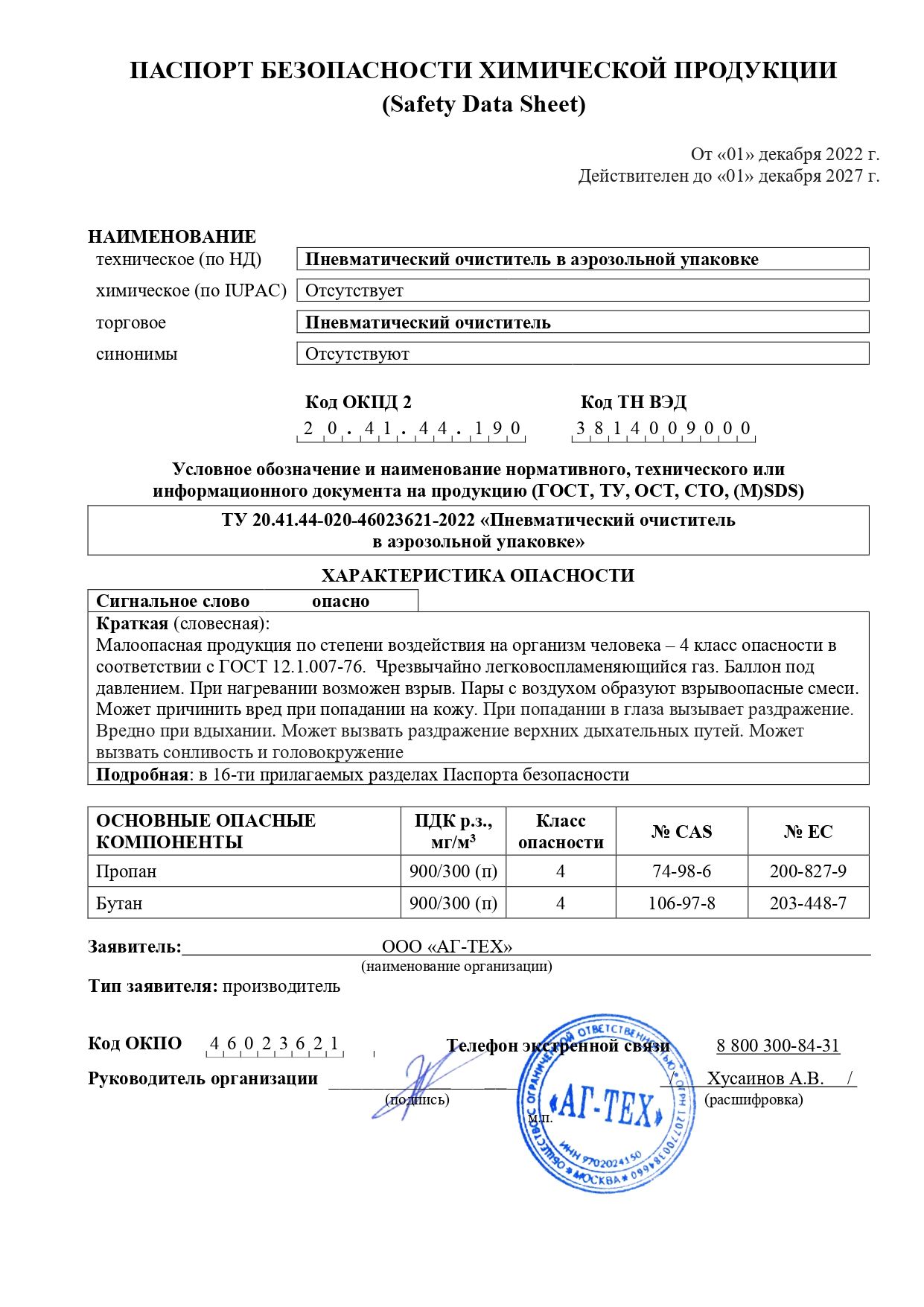 Меры предосторожности: Баллон под давлением. При нагревании возможен взрыв. Предохранять от воздействия прямых солнечных лучей и нагревания выше 50 °С. Не распылять вблизи источников открытого огня и раскаленных предметов. Не курить во время пользования. Не разбирать и не давать детям. Не вдыхать испарения и брызги.