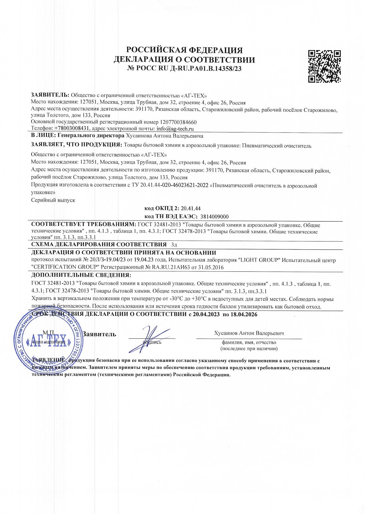 Продукт предназначен для бесконтактного удаления пыли и мелкого мусора из труднодоступных мест и внутреннего пространства компьютерной техники, аудио-, видео- и фотоаппаратуры, офисной и бытовой техники. Подходит для очистки поверхностей печатных плат, линз оптических приборов, лабораторного, диагностического и другого деликатного оборудования. Распылительная головка с трубочкой позволяет контролировать направление и силу струи очистителя. Не оставляет следов при распылении. Давление внутри баллона – 5,5 Бар.