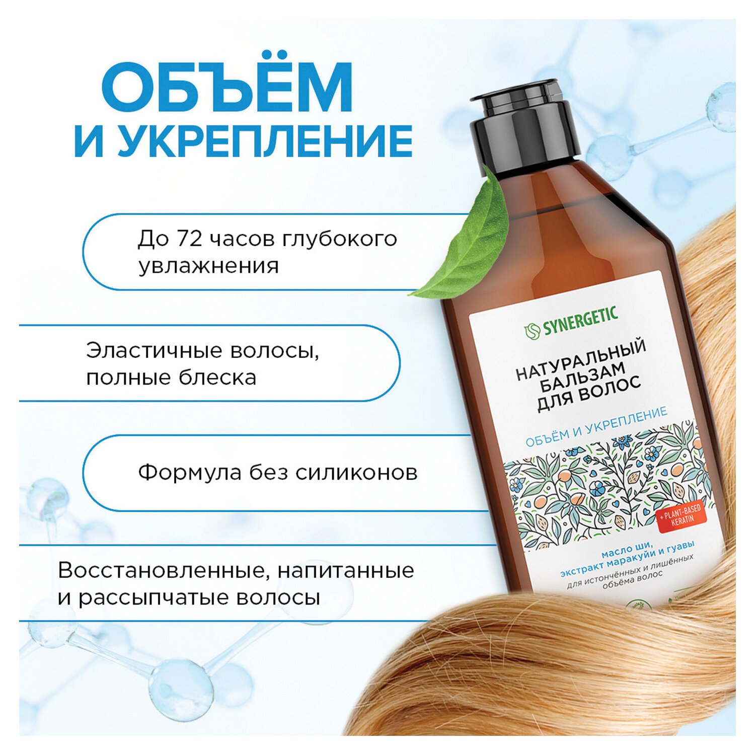 Натуральный бальзам для волос SYNERGETIC "Объем и укрепление волос" - эффективное средство для ухода за истонченными и лишенными объема волосами, состоящее из натуральных компонентов.