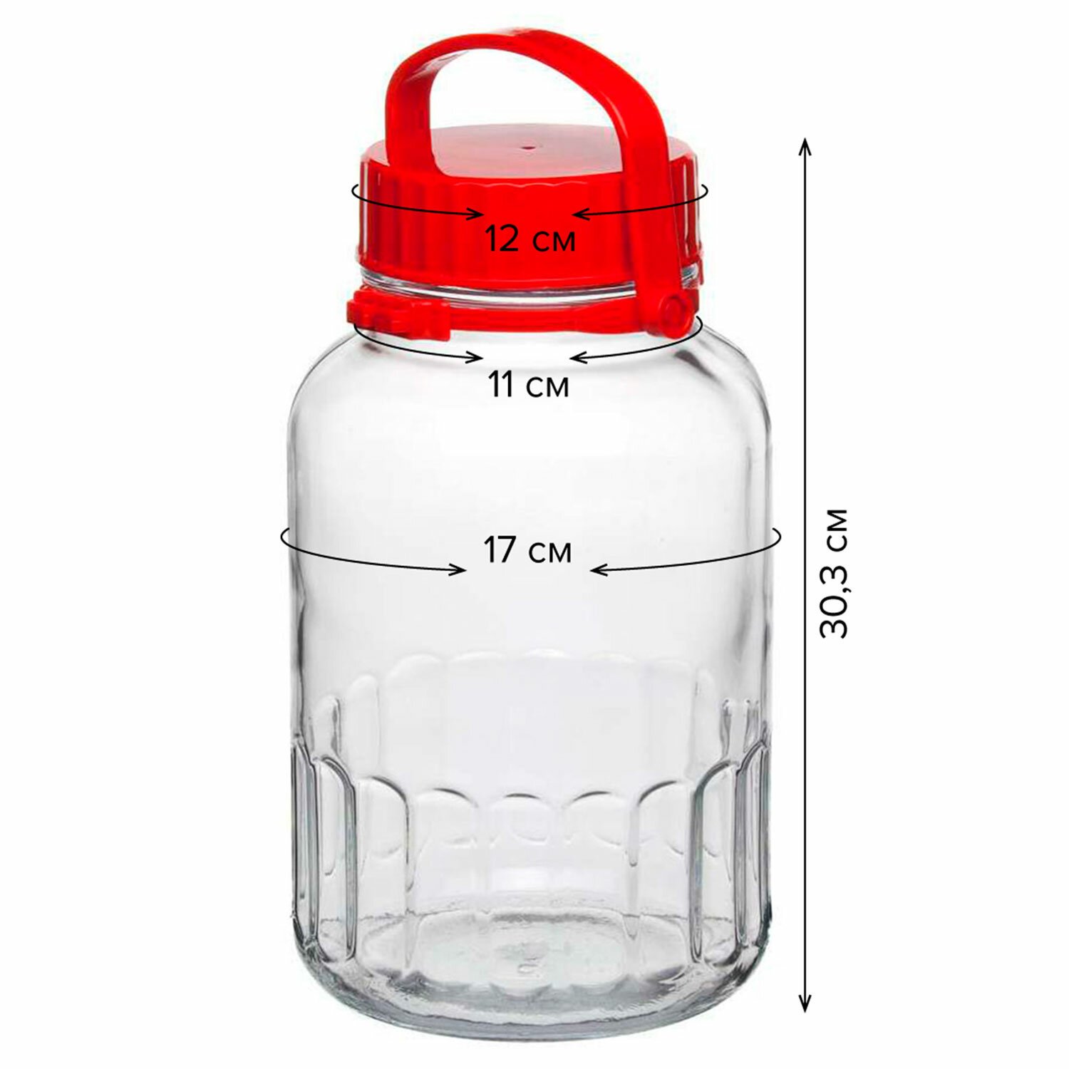 Банка герметичная с красной крышкой, объем 5000 мл, стекло, PASABAHCE "ХАРВЕСТ", 80007СЛ1