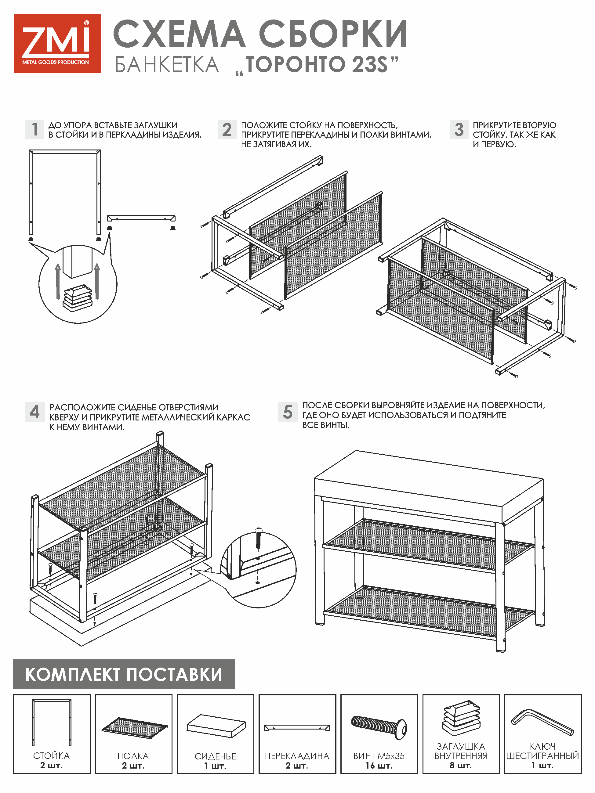 Простая сборка согласно инструкции, шестигранный ключ для сборки в комплекте.